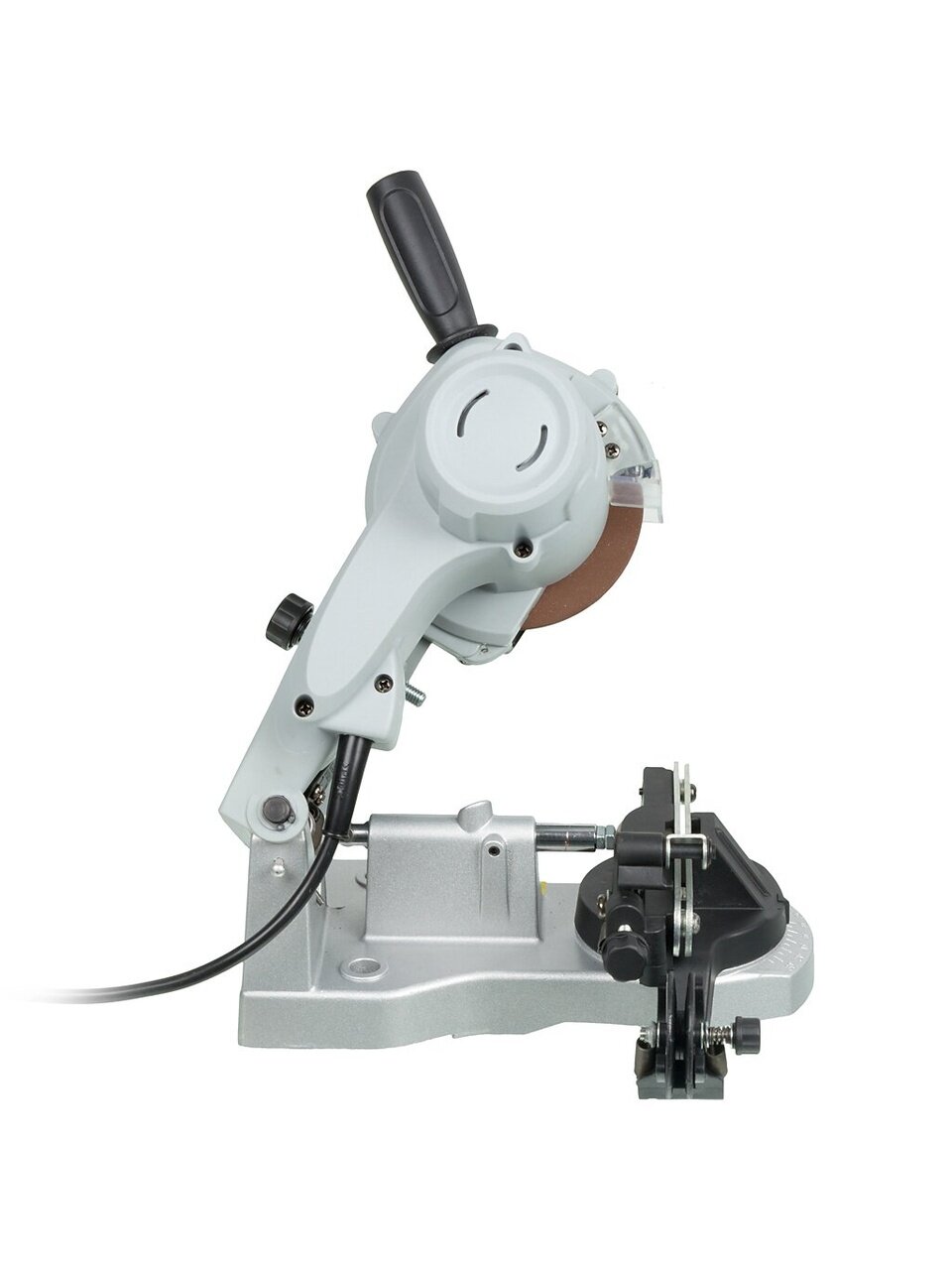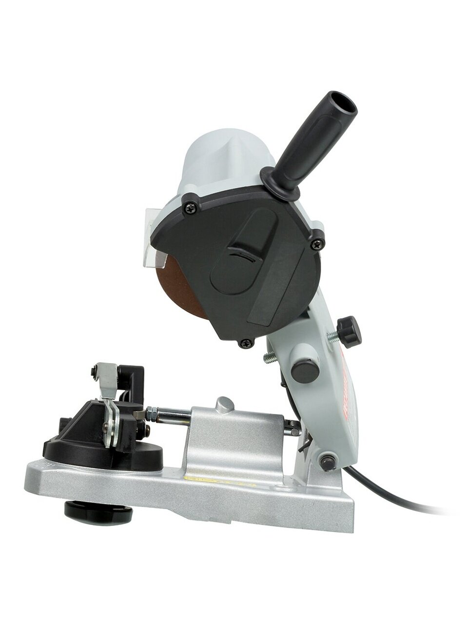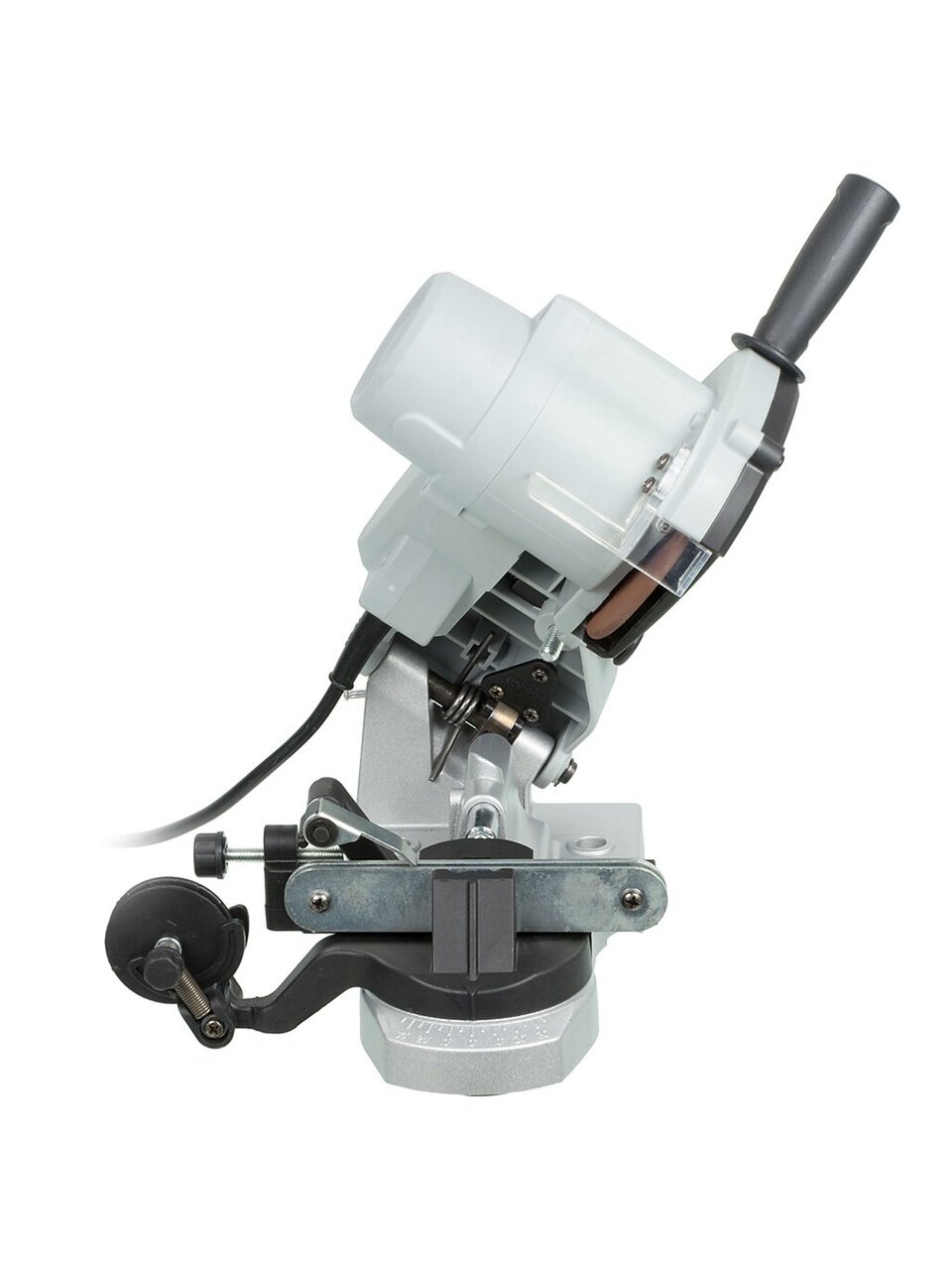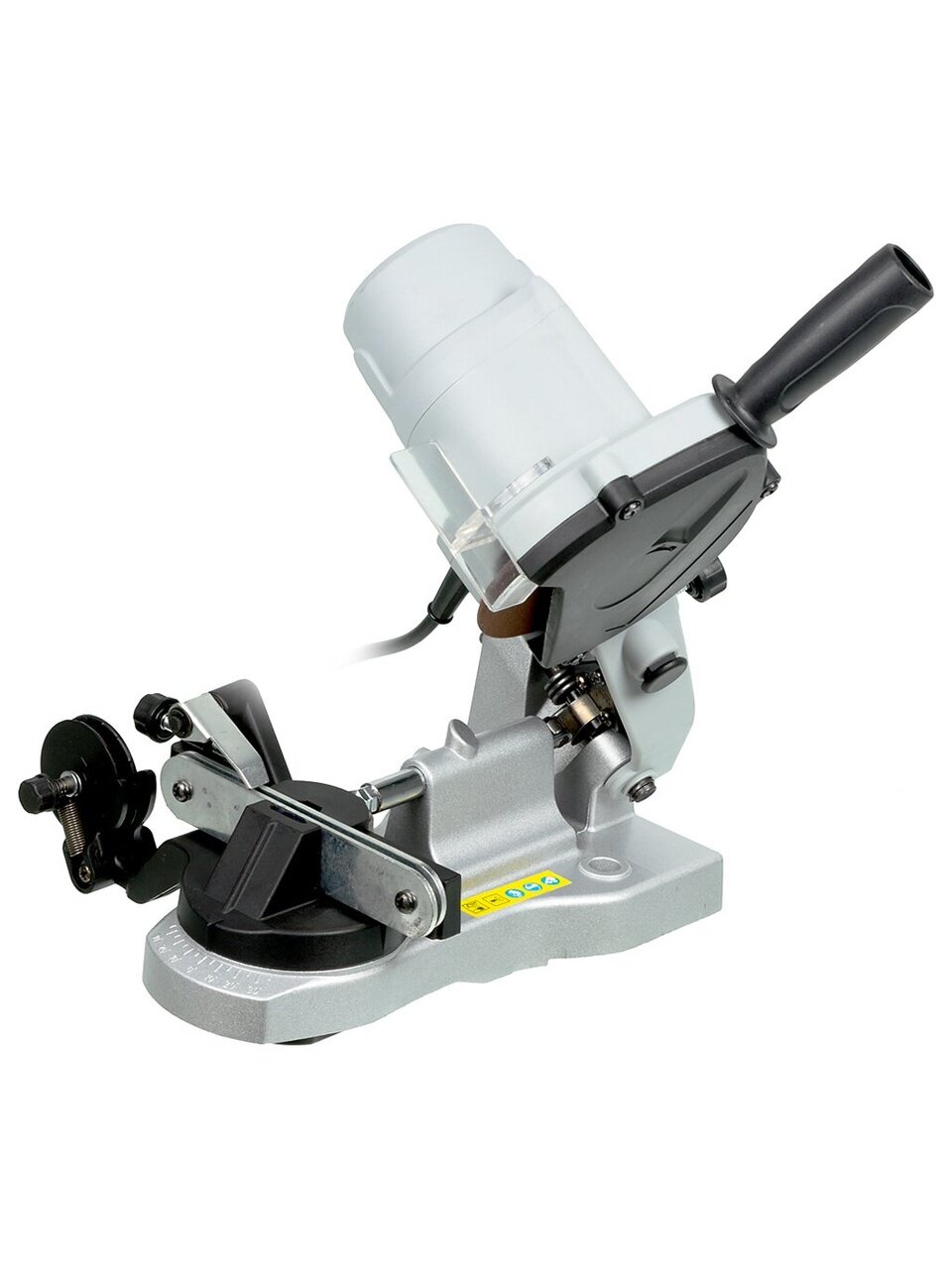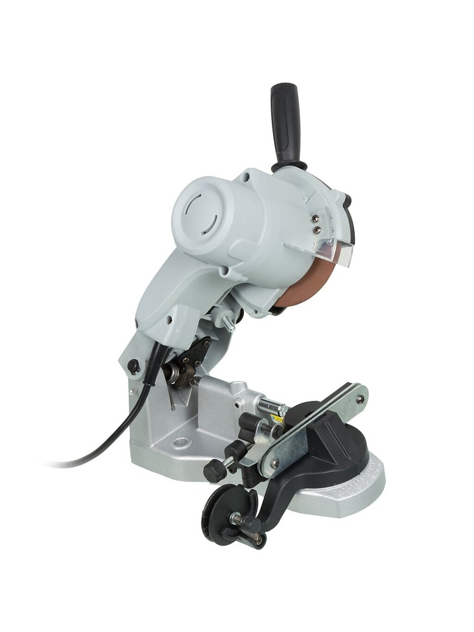 - Безопасная эксплуатация. Щиток из прозрачного пластика защищает оператора от искр, вылетающих в процессе эксплуатации станка для заточки цепей.