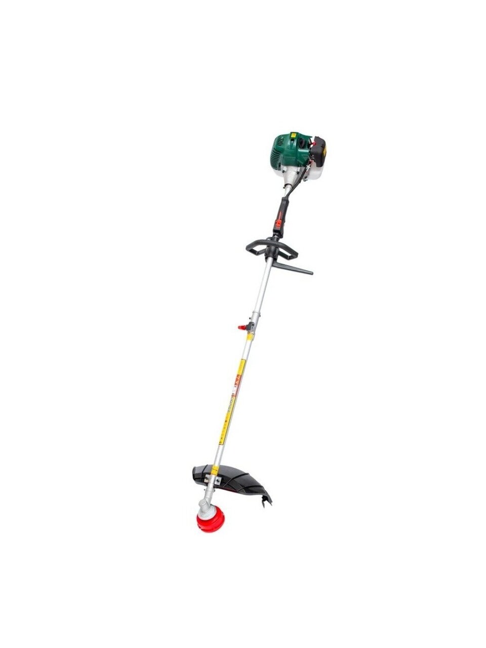 - Триммер работает надежно и долго благодаря бензиновому двигателю и двухтактной системе смазки.