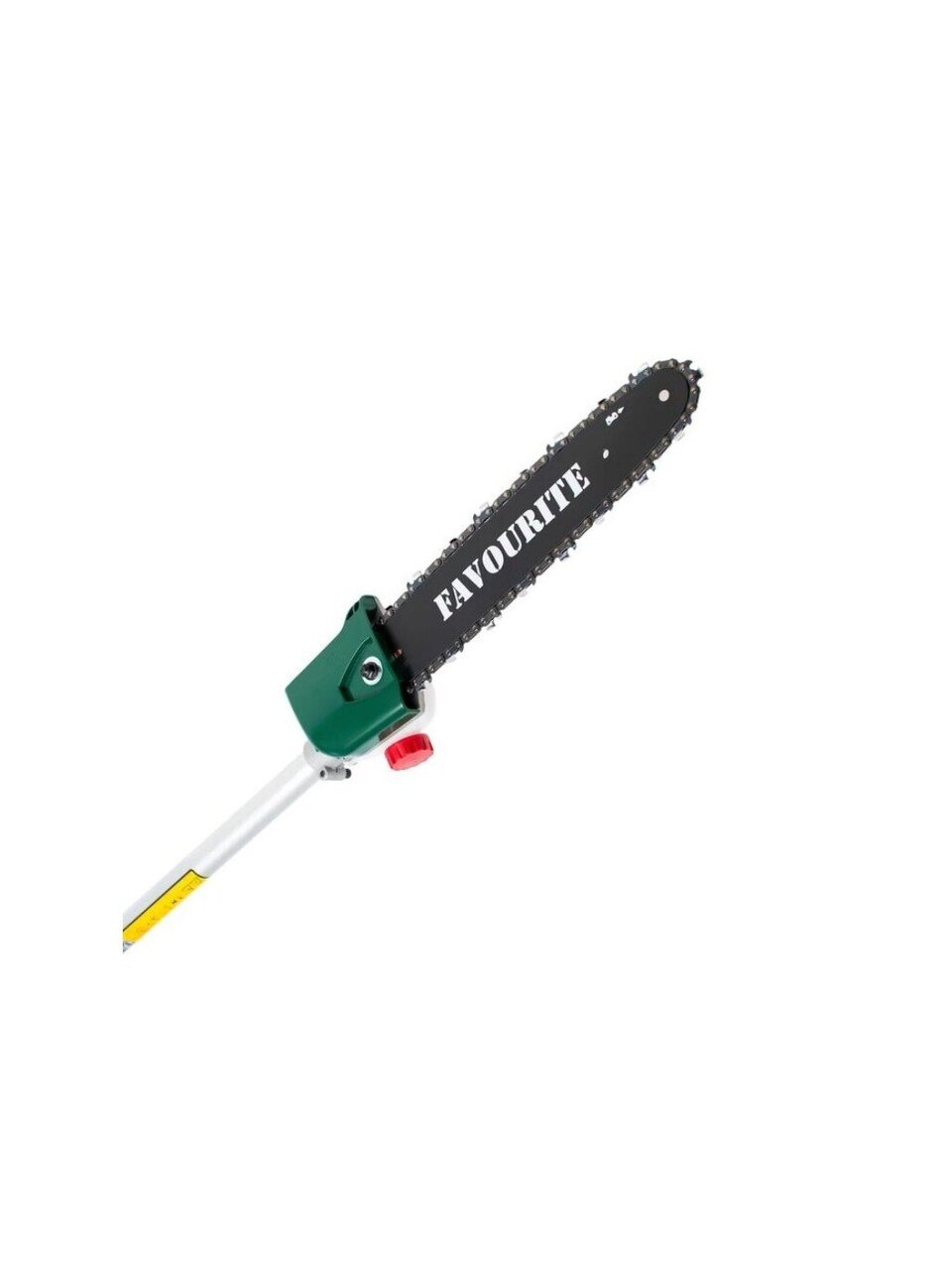 В комплект этого инструмента входят три сменные насадки: триммер, кусторез и цепная пила. Триммер поможет обработать газон. Кусторез обеспечит легкое формирование кустарников, а цепная пила идеально подходит для обработки деревьев. Таким образом, с этим инструментом вы сможете выполнить разнообразные задачи в саду, не покупая отдельные инструменты для каждой операции.