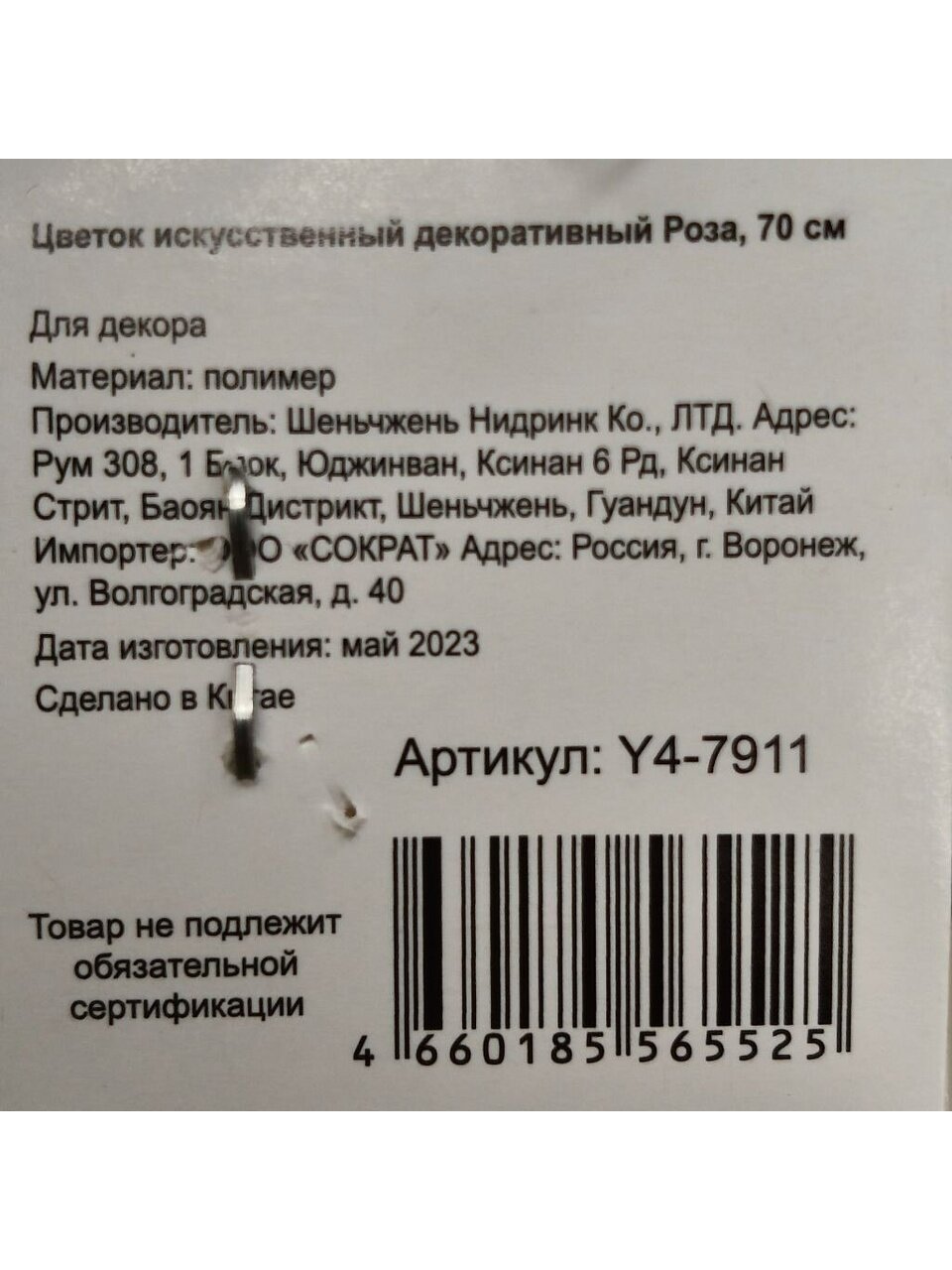 Искусственные цветы - это не только элемент декора, но и функциональный аксессуар, который может значительно улучшить внешний вид вашего дома или офиса. Они прекрасно дополняют интерьер, создают уютную атмосферу и делают помещение более живым и привлекательным. Данный цветок выглядит изысканно и реалистично, его трудно отличить от настоящего. Лепестки розы выполнены из мягкого и приятного на ощупь материала, который создает ощущение живого цветка. Искусственная роза станет прекрасным дополнением к любому интерьеру, добавит нотку романтики и уюта в ваш дом или офис.