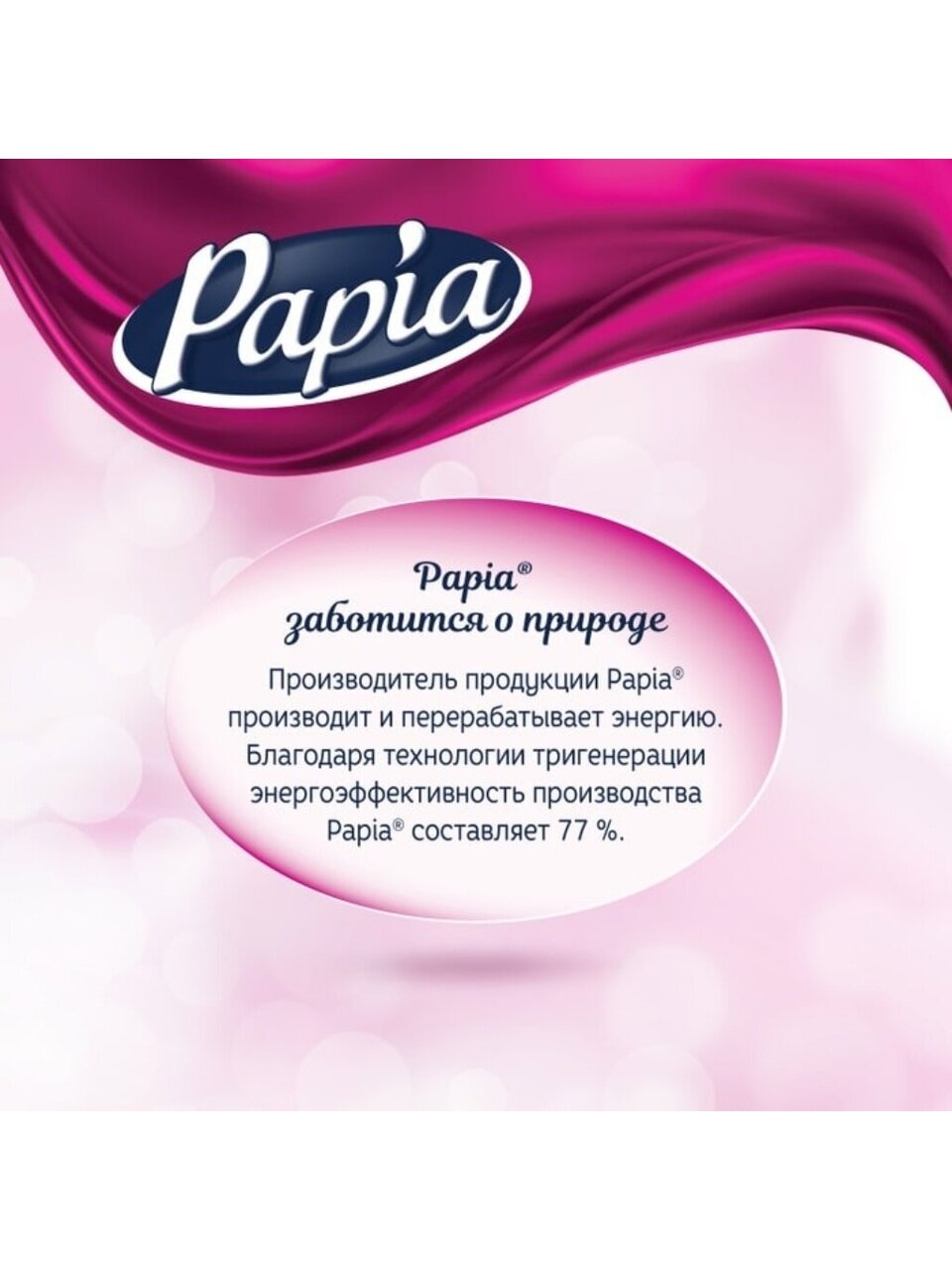 Туалетная бумага Papia Балийский цветок изготовлена из 100% натуральной целлюлозы. Мягкая, но в то же время впитывающая и прочная бумага не расслаивается и отрывается строго по линии перфорации. Туалетная бумага Papia деликатно очищает и нежно заботится о Вашей коже.