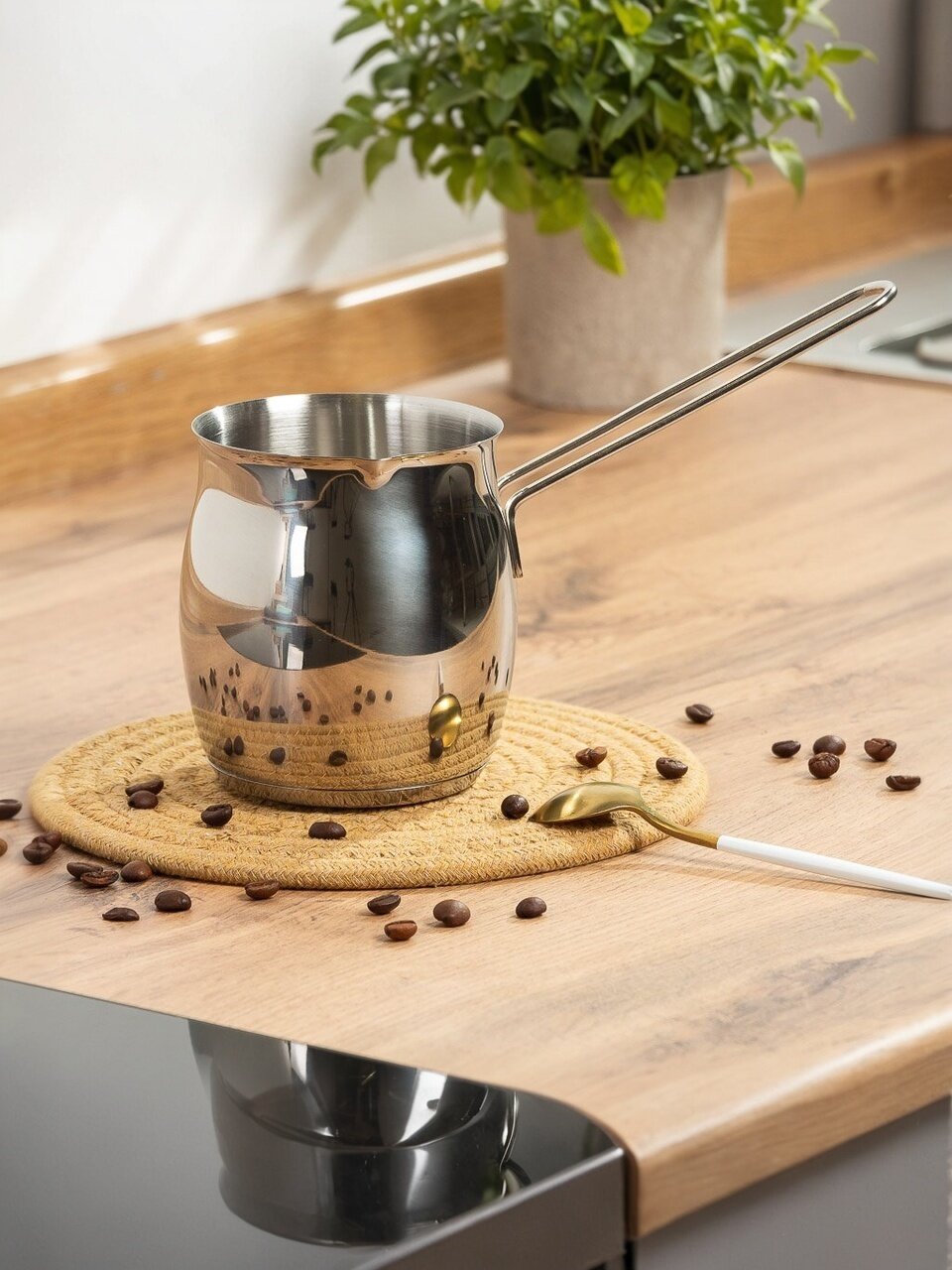 Изготовленная из высококачественной нержавеющей стали, турка объемом 0.6 литра станет вашим незаменимым помощником в приготовлении ароматного кофе. Нержавеющая сталь не только обеспечивает долговечность изделия, но и сохраняет естественный вкус напитка. Металлическая ручка добавляет изысканности и удобства в использовании, а также гарантирует безопасный захват без риска обжечься.