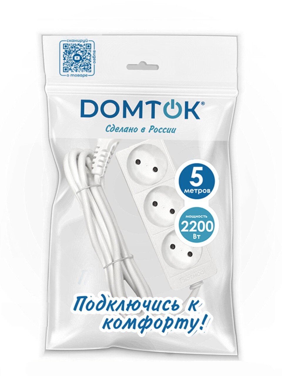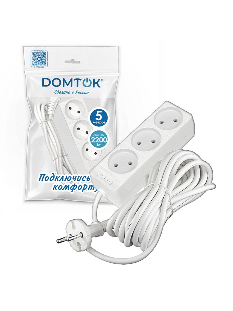 Удлинитель Domtok 2372: 3 гнезда, 5 метров, для дома и дачи. Надёжное решение без заземления, выдерживает нагрузку до 2200 Вт — удобно и безопасно.