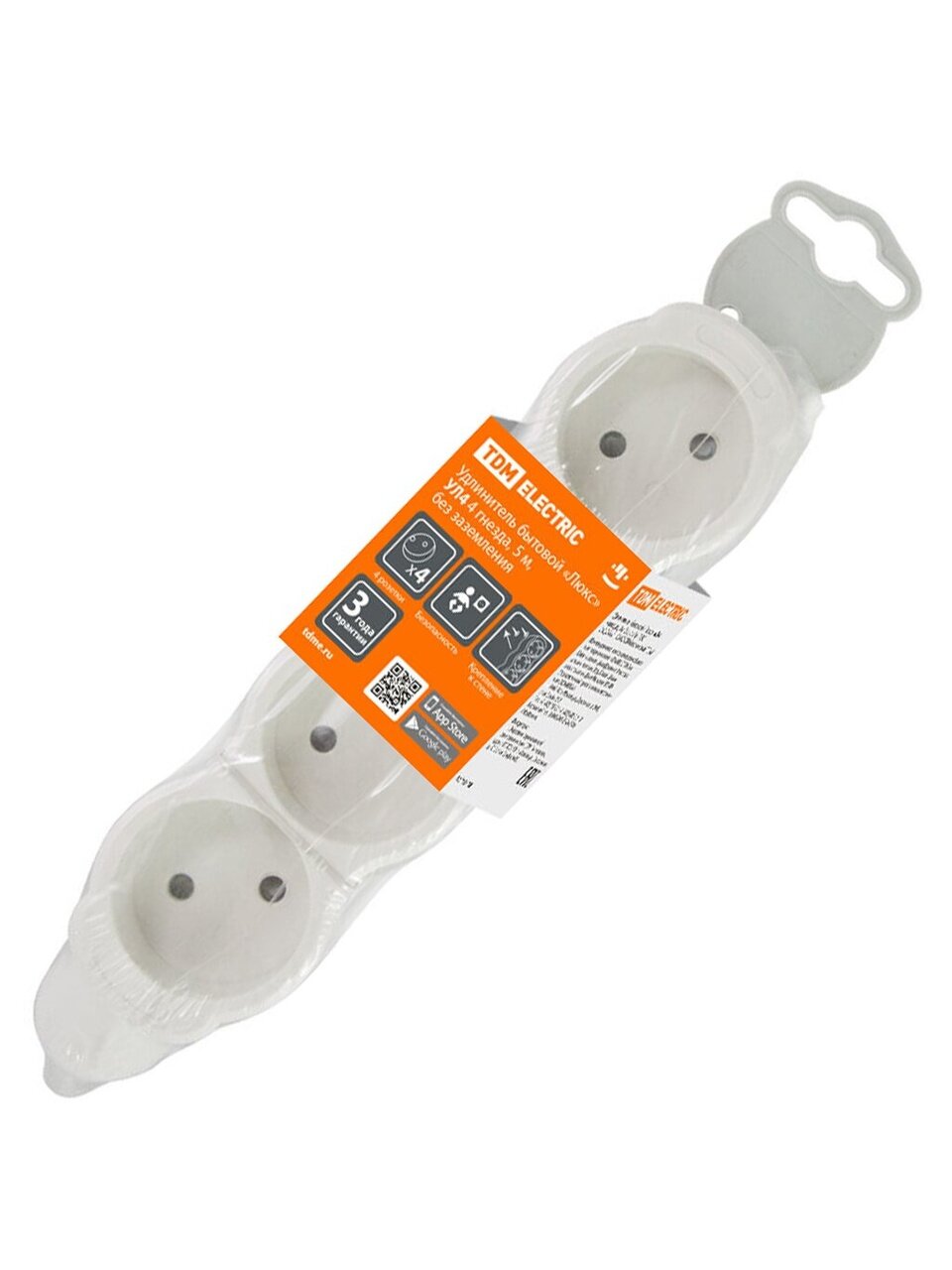 Вы можете приобрести «Удлинитель бытовой 4 гнезда, 5 м, ПВС, 2х0.75 мм², без заземления, 10 А, 250 В, с защитными шторками, бело-серый, TDM Electric, Люкс УЛ4, SQ1303-0228» и другие товары в нашем интернет-магазине в Ельце по низким ценам и с бесплатным самовывозом.