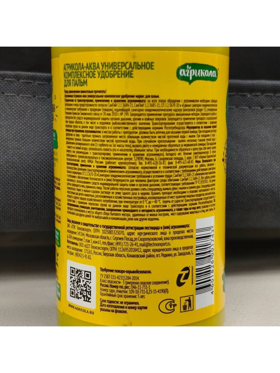 Вы можете приобрести «Удобрение Аква, для пальмы, жидкость, 250 мл, Агрикола» и другие товары в нашем интернет-магазине в Брянске по низким ценам и с бесплатным самовывозом.