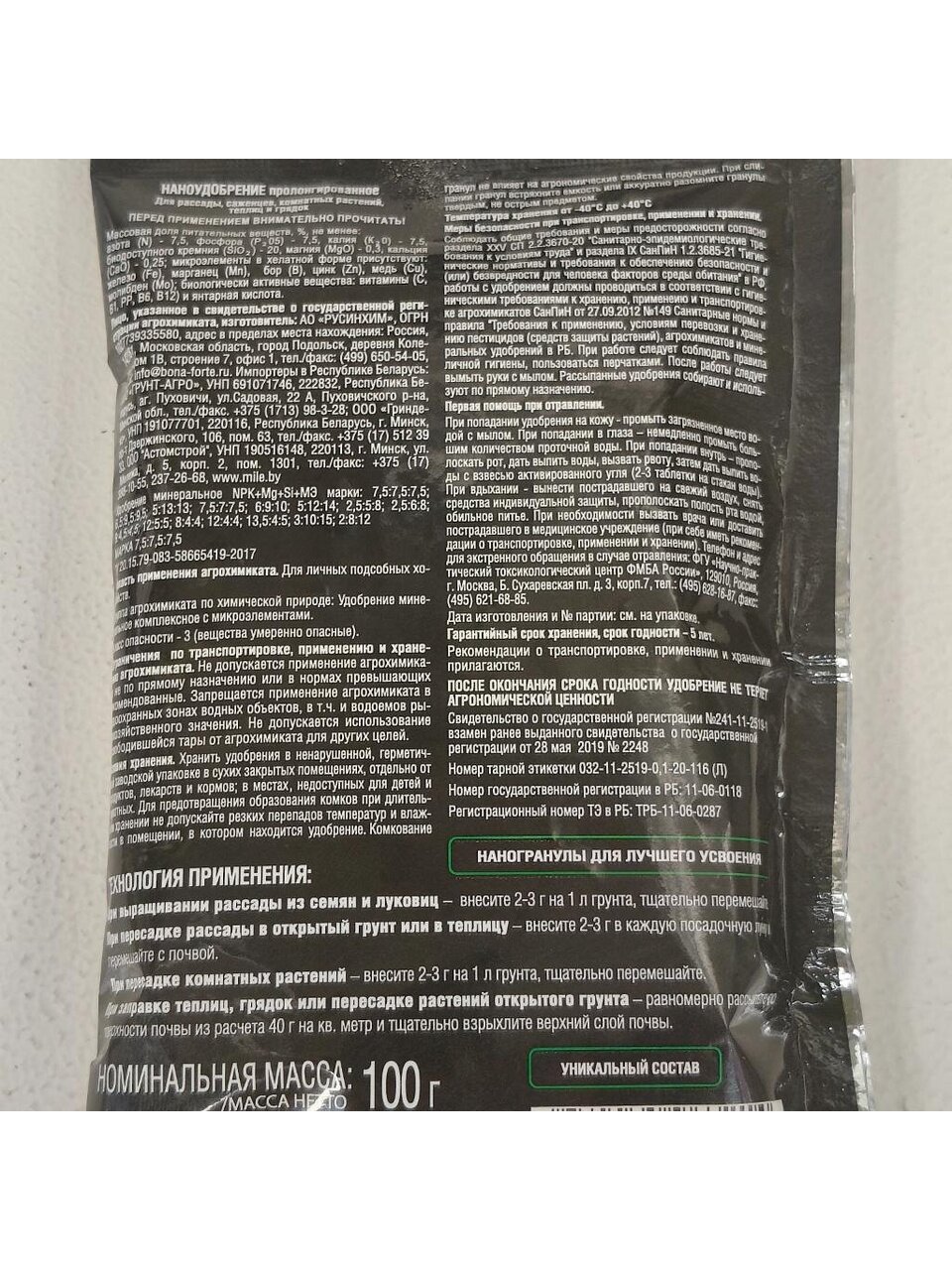 Удобрение содержит полный комплекс веществ, необходимых для полноценного и сбалансированного питания растений.