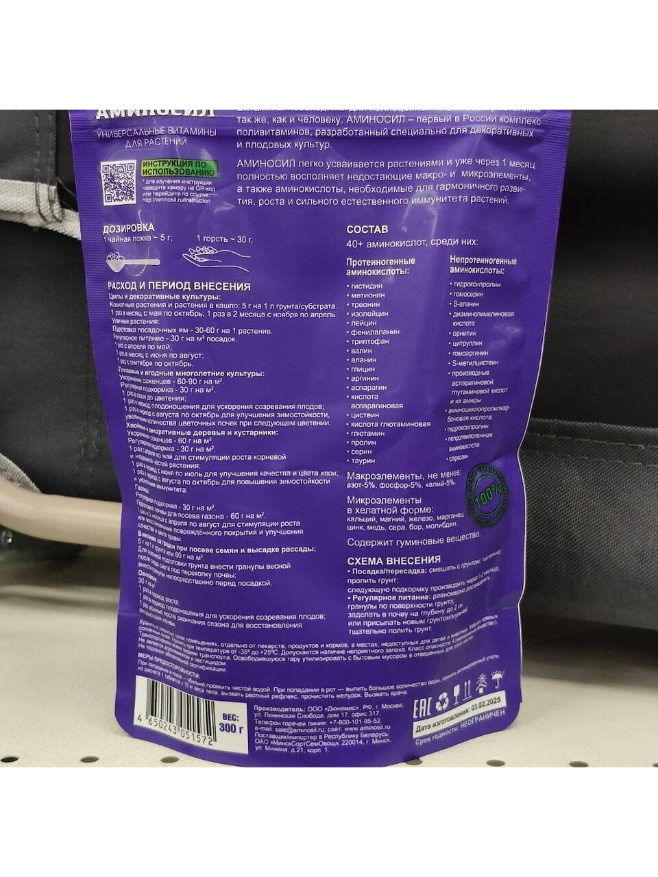 Витамины Аминосил универсальные в гранулах представляют собой уникальную комбинацию аминокислот, макро- и микроэлементов, которая обеспечивает полноценное питание для всех видов растений, способствуя их стабильному развитию и укреплению естественного иммунитета.