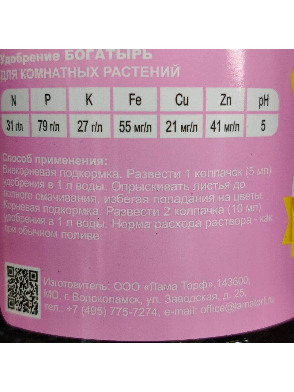 Вы можете приобрести «Удобрение Богатырь, для комнатных растений, органоминеральное, жидкость, 300 мл, Лама Торф» и другие товары в нашем интернет-магазине в Тамбове по низким ценам и с бесплатным самовывозом.