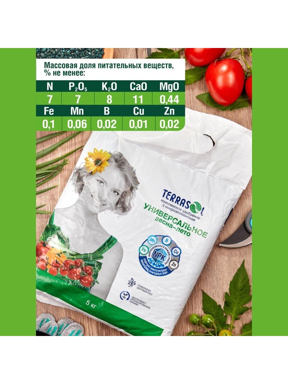 Представляем уникальное удобрение весна-лето от бренда Террасол, которое станет незаменимым помощником в выращивании овощей, картофеля и плодово-ягодных культур. Это минеральное удобрение в форме гранул создано для того, чтобы ваши растения росли здоровыми и сильными, защищая их от болезней и способствуя активному развитию. Использование удобрения возможно в течение весны, лета и осени, что делает его универсальным выбором для садоводов и огородников.