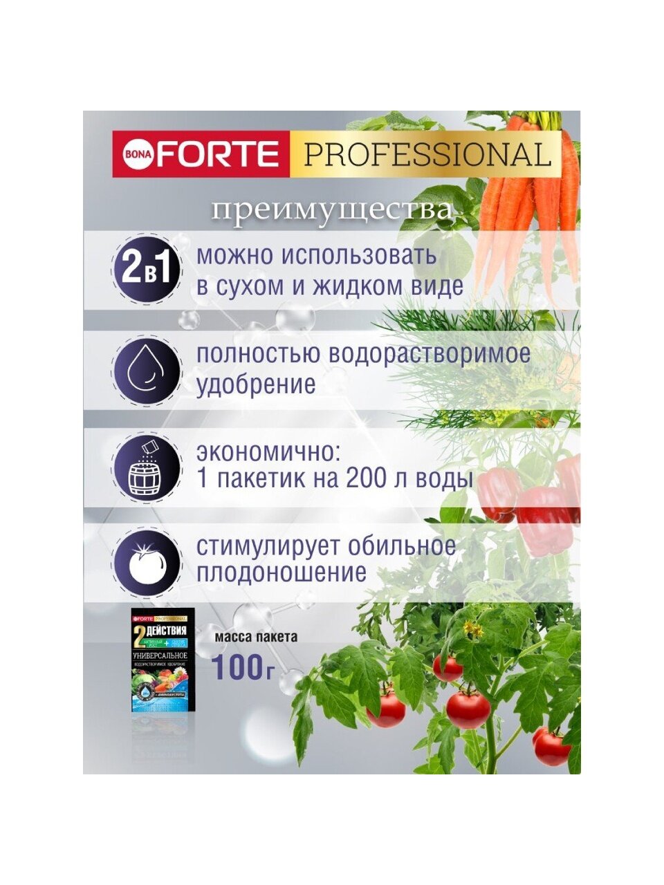 Вы можете приобрести «Удобрение универсальное, 100 г, Bona Forte» и другие товары в нашем интернет-магазине в Брянске по низким ценам и с бесплатным самовывозом.