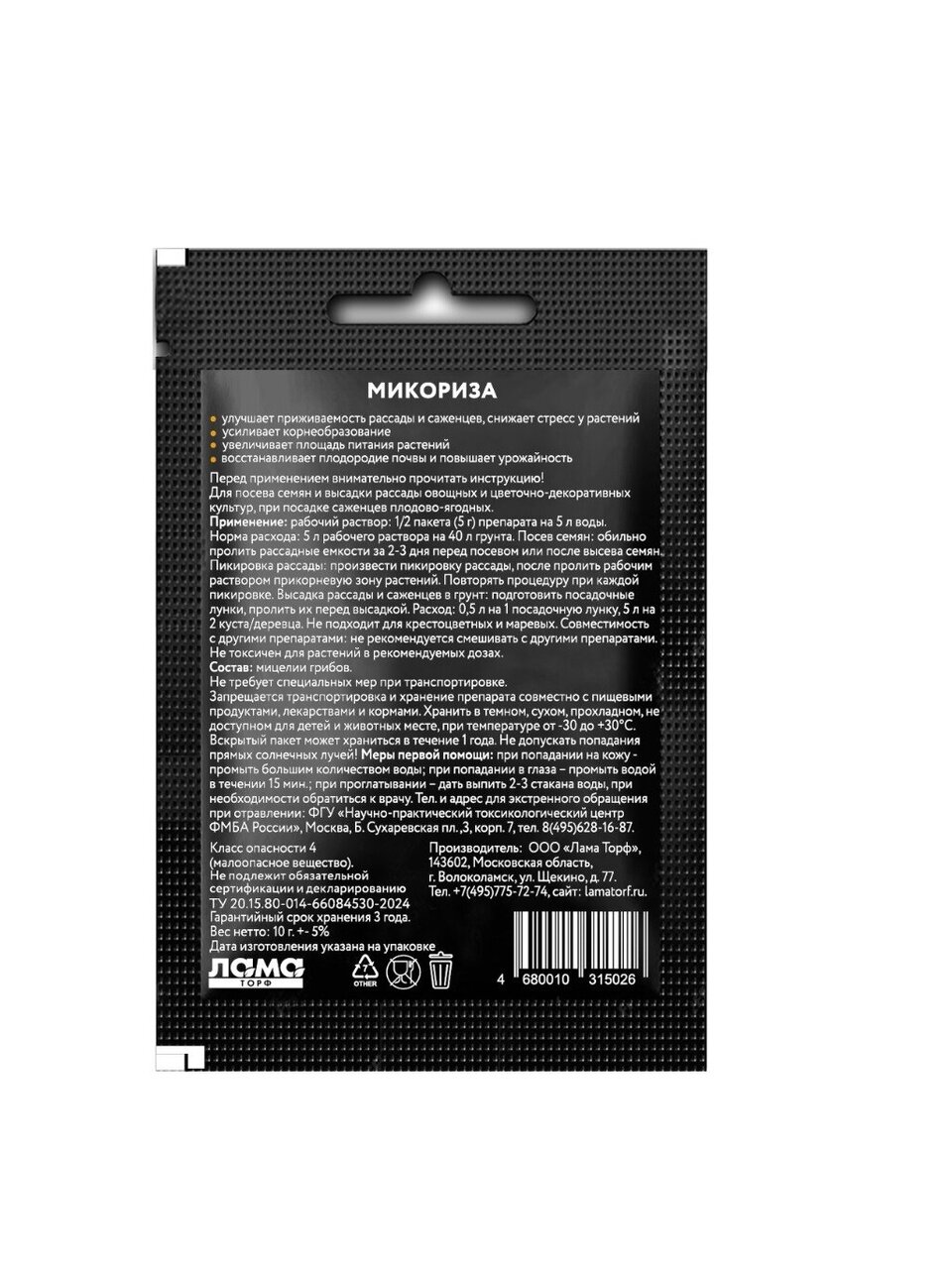 Откройте секрет успешного роста растений с удобрением Микориза от Лама Торф! Это минеральное удобрение в форме гранул создано специально для рассады и обеспечивает мощную стимуляцию корнеобразования. Подходит для использования зимой, весной и летом, помогая вашим растениям расти здоровыми и сильными.
