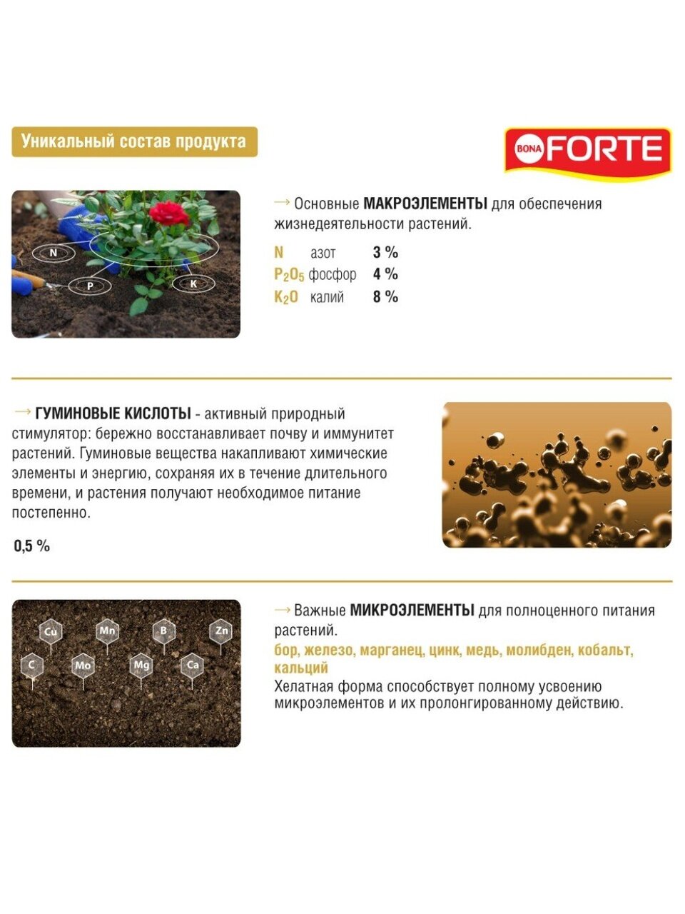 Жидкое минеральное удобрение Bona Forte "Здоровье" для роз и пионов — эффективное решение для обильного цветения и крепкого иммунитета растений. Формула легко усваивается, подходит для регулярного ухода. Флакон 285 мл удобен для хранения и использования.