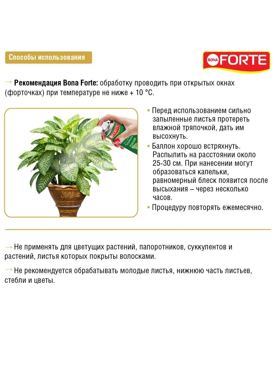 Средство подходит для любого сезона: весна, лето, осень, зима — уход за зелёными любимцами всегда под контролем. Минеральные компоненты способствуют интенсивному росту и восстановлению листьев, предотвращая появление вредителей и сохраняя декоративность даже в условиях недостаточного освещения или сухого воздуха. Применение спрея помогает поддерживать оптимальное состояние листвы, делая её насыщенно-зелёной и ухоженной.