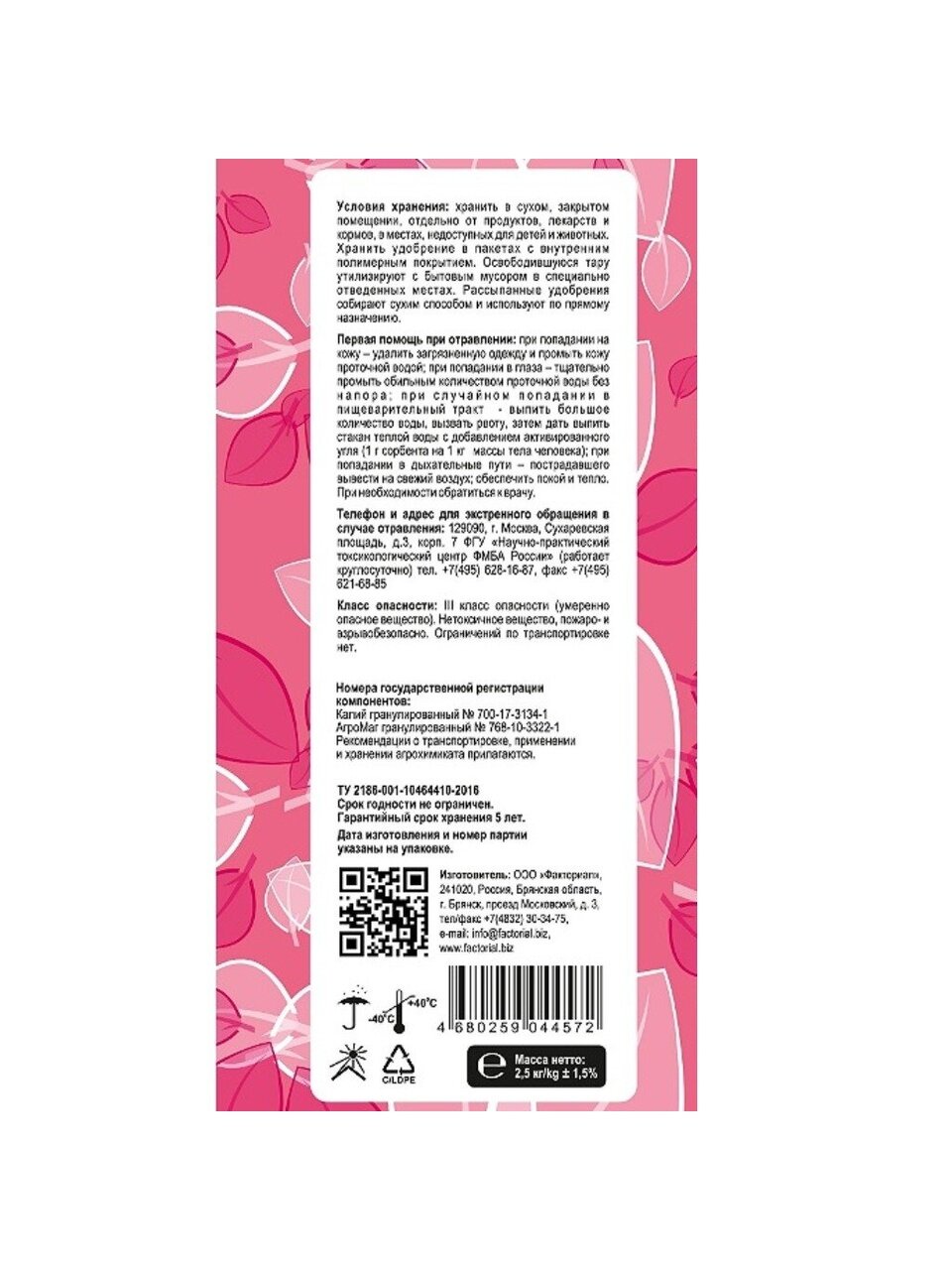 Вы можете приобрести «Удобрение Калийная смесь, с микроэлементами, минеральное, гранулы, 2.5 кг, Factorial» и другие товары в нашем интернет-магазине в Смоленске по низким ценам и с бесплатным самовывозом.