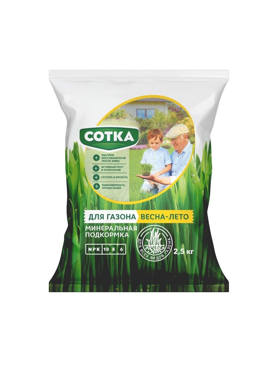 Откройте для себя эффективное решение для ухода за газоном с удобрением Сотка Тукосмесь! Это минеральное удобрение специально разработано для стимуляции роста растений в период весна-лето. Продукт выпускается в удобной гранулированной форме и упакован в пакет весом 2.5 кг. Идеально подходит для поддержания здоровья и красоты вашего газона.