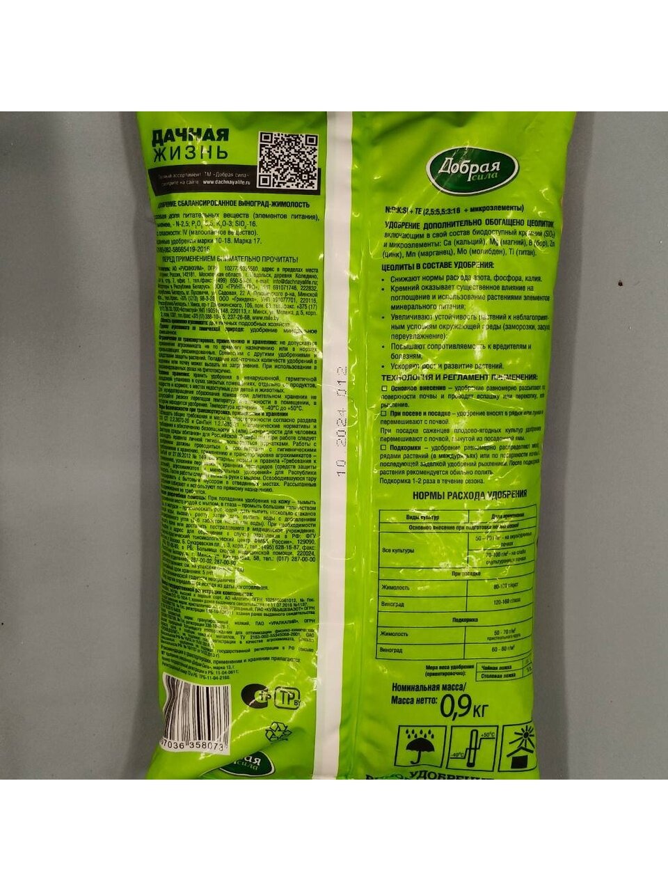 Удобрение рекомендовано для всех видов семейства виноградных, обогащено цеолитами, содержащими биодоступный кремний.