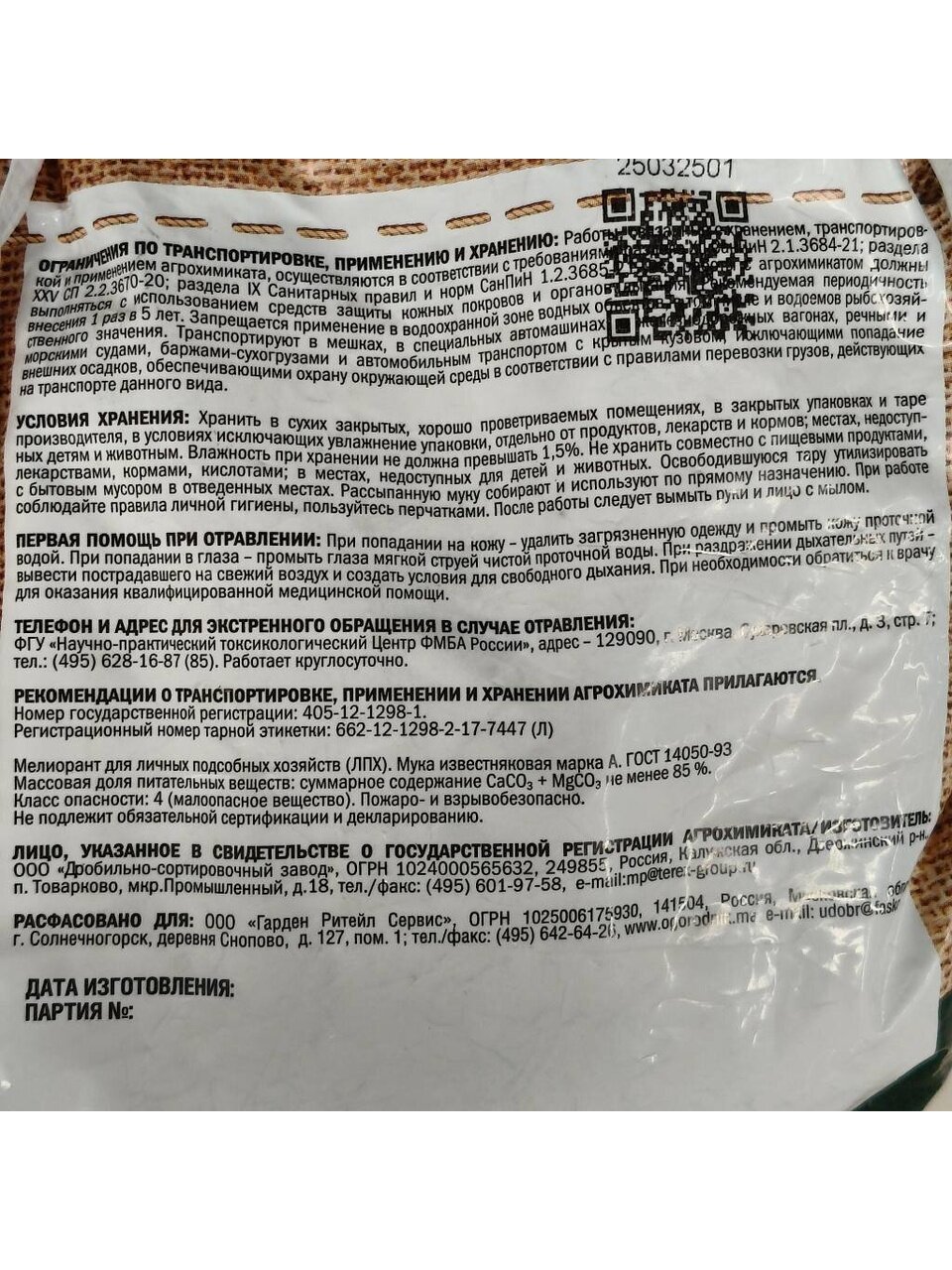 Доломитовая мука (раскислитель почвы) - комплексный мелиорант длительного действия для раскисления почв. Доломитовая мука вносится как в открытый грунт, так и в закрытый – парник, теплица. Эффективность проявляется на бедных кальцием песчаных и супесчаных почвах.