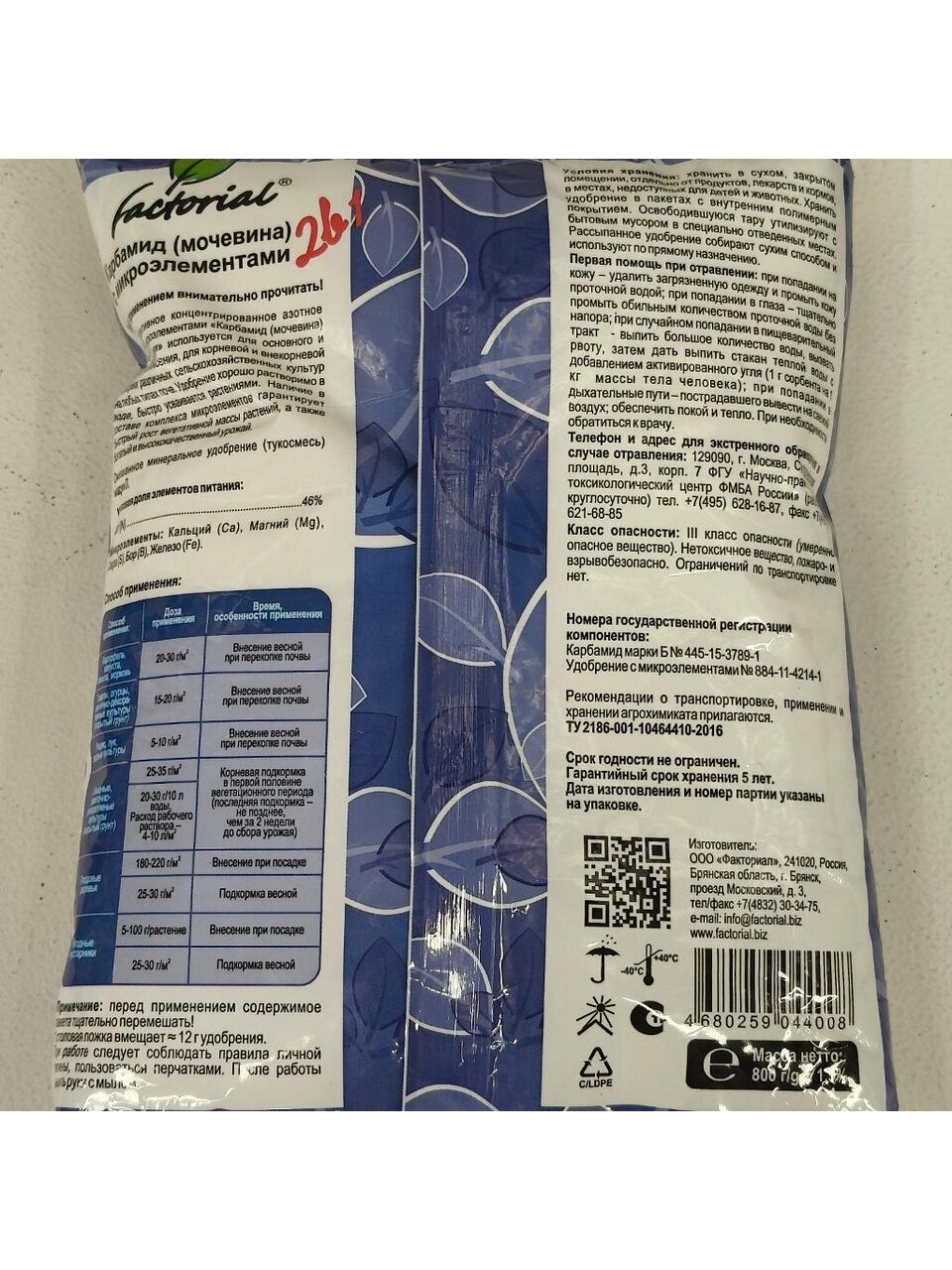 Вы можете приобрести «Удобрение Карбамид, минерал с микроэлементами, 800 г, Factorial» и другие товары в нашем интернет-магазине в Железногорске по низким ценам и с бесплатным самовывозом.