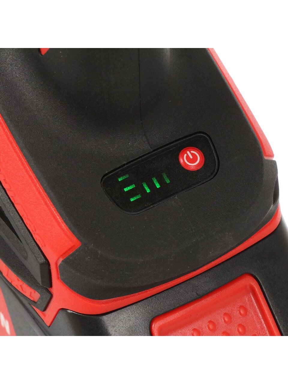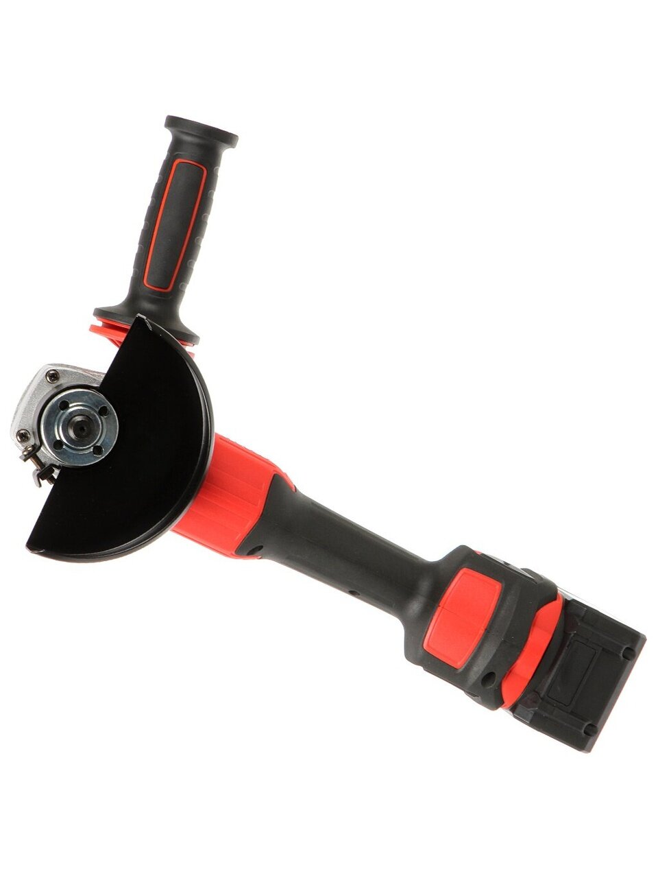 Продуманная конструкция с рукоятками, покрытыми резиной, обеспечивает уверенный хват и снижает усталость при длительном использовании. Защитный кожух предотвращает попадание пыли и искр, а индикатор заряда аккумулятора позволяет контролировать время работы. Блокировка шпинделя и кнопки включения повышают уровень безопасности и удобства эксплуатации. Инструмент относится к бытовому классу, что делает его отличным выбором для домашних мастеров и дачников.