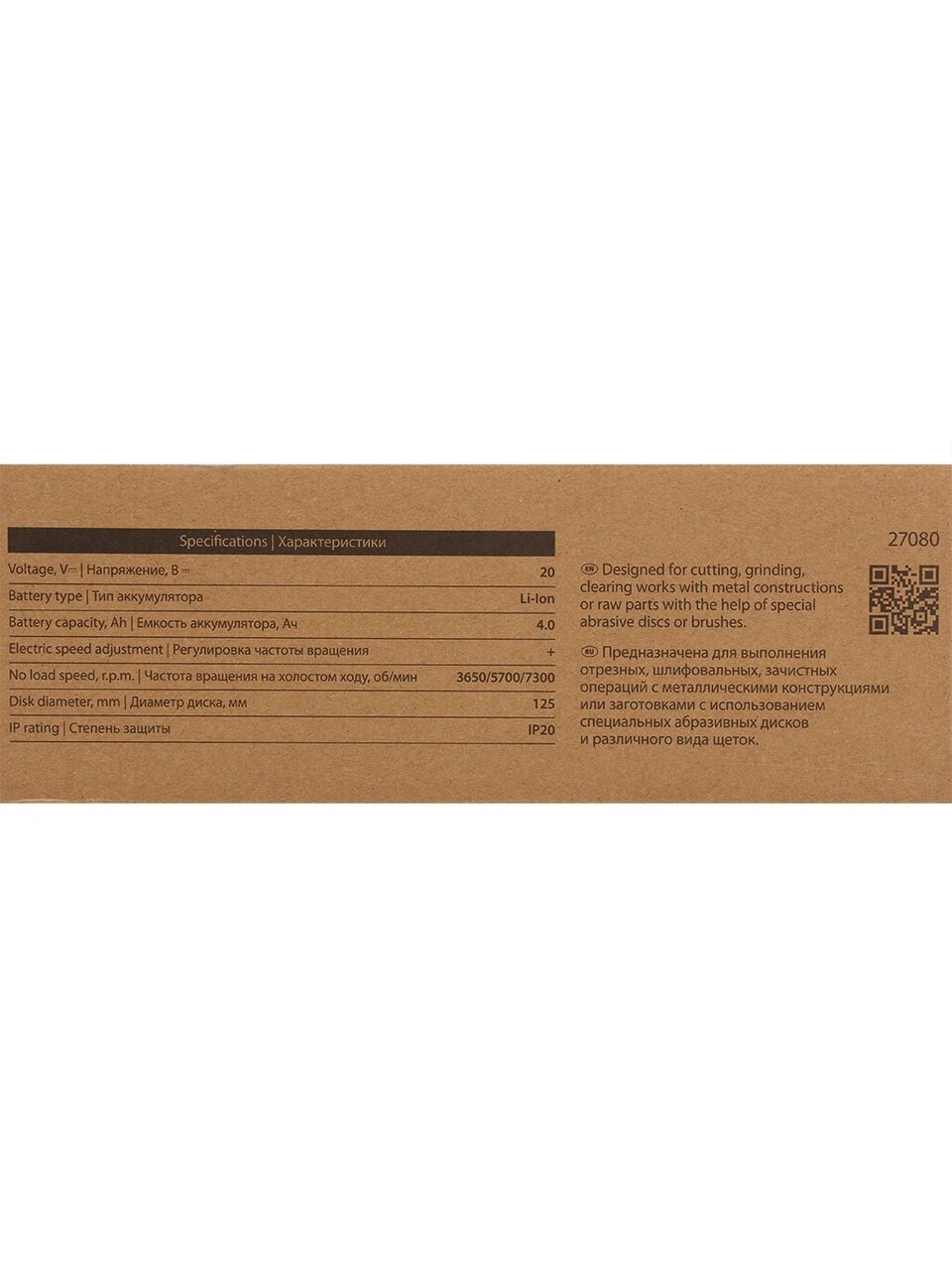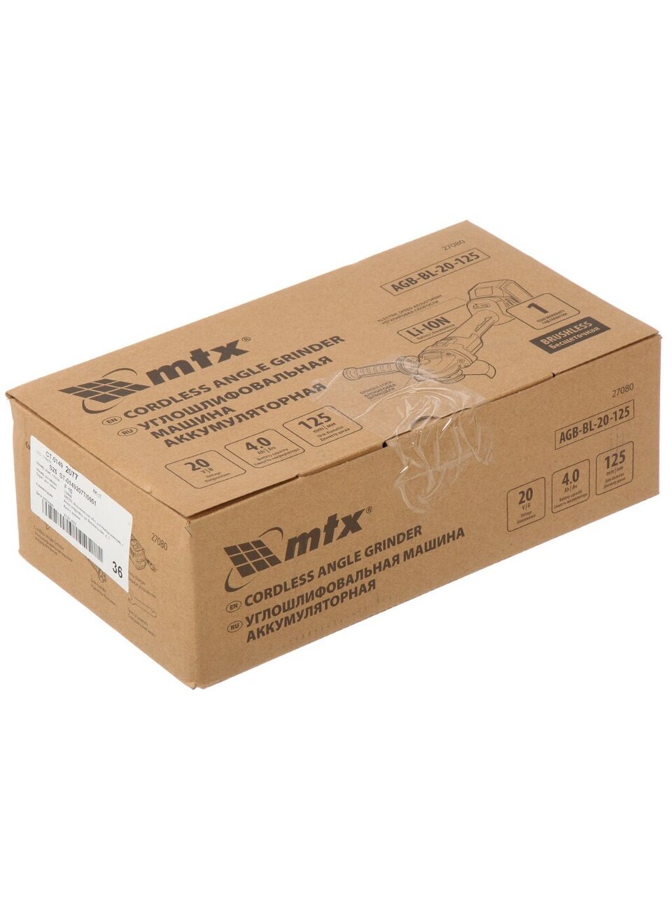 Вы можете приобрести «Угловая шлифовальная машина аккумуляторная, MTX, AGB-BL-20-125, 125 мм, 27080» и другие товары в нашем интернет-магазине в Шахтах по низким ценам и с бесплатным самовывозом.
