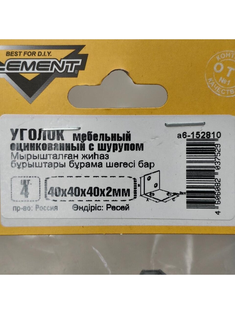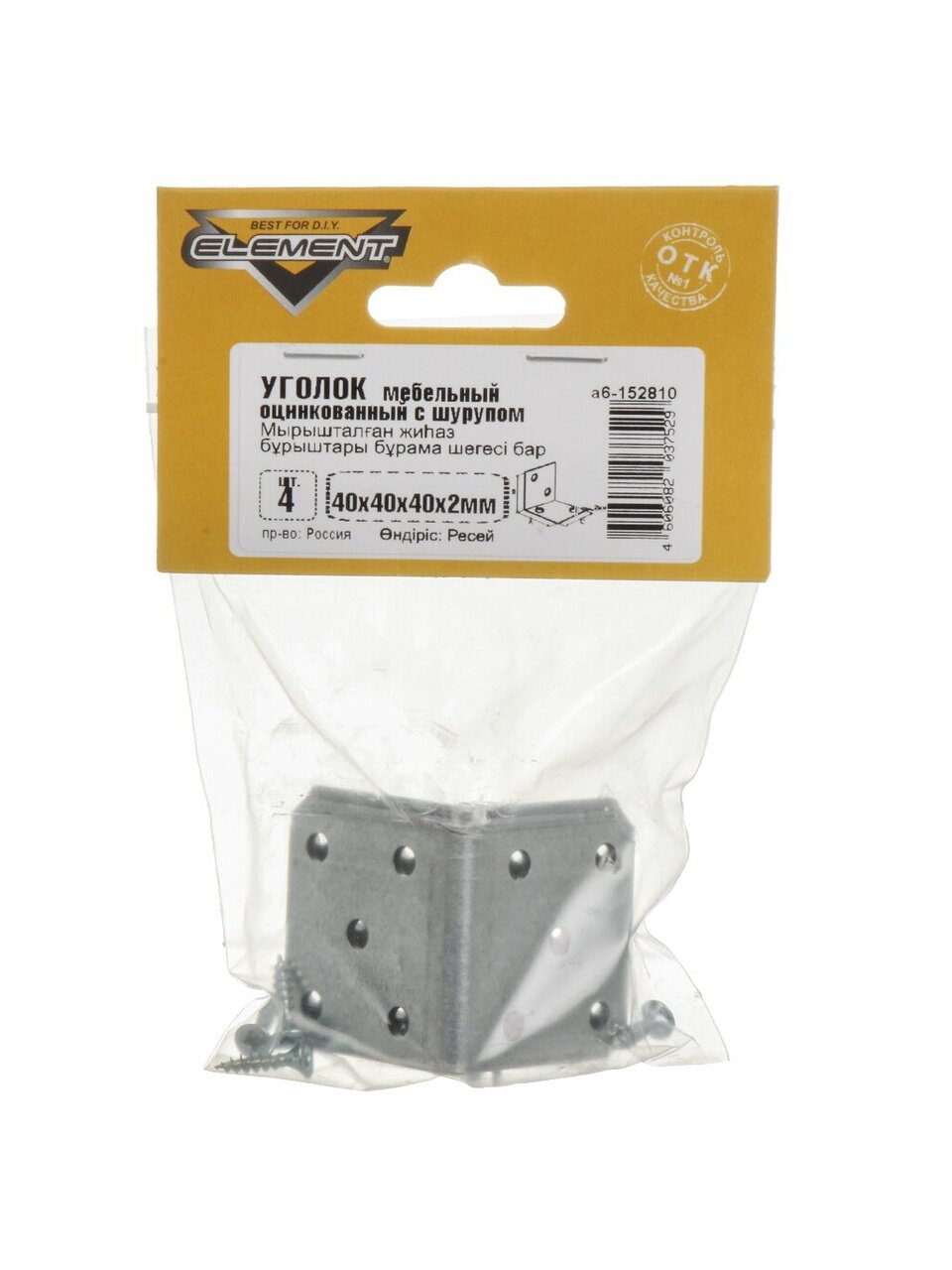 Вы можете приобрести «Уголки мебельные 40x40x40x2 мм, с шурупом, белый цинк, 4 шт, Element, 152810» и другие товары в нашем интернет-магазине в Железногорске по низким ценам и с бесплатным самовывозом.