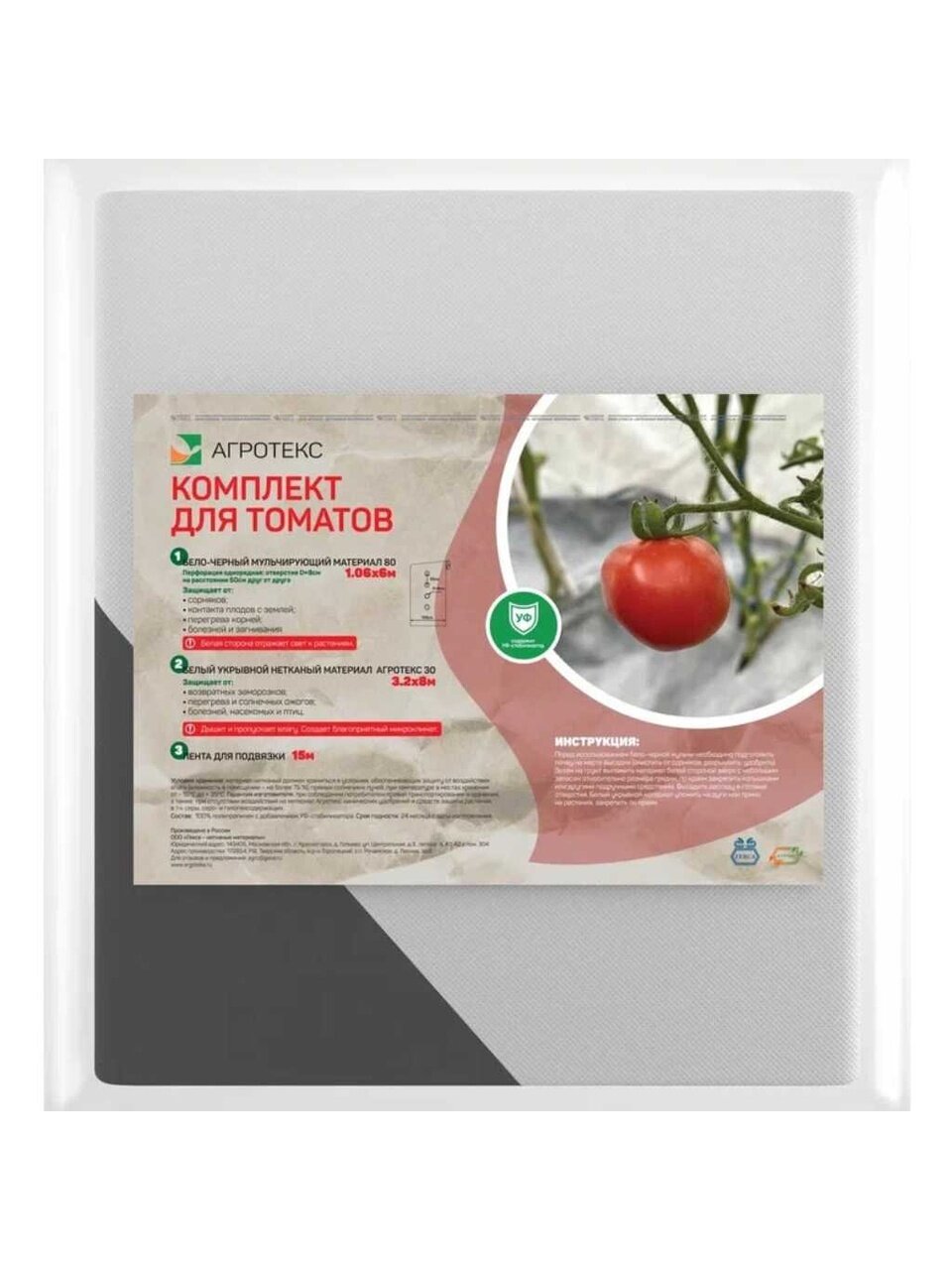 Вы можете приобрести «Комплект для томатов 80 г/м2, 1.06х6 м, Агротекс, белый 30 г/м², 3.2х8 м., лента L15, бело-черный, 32.01.26.01.00.000.0000.0000.00» и другие товары в нашем интернет-магазине в Ярославле по низким ценам и с бесплатным самовывозом.