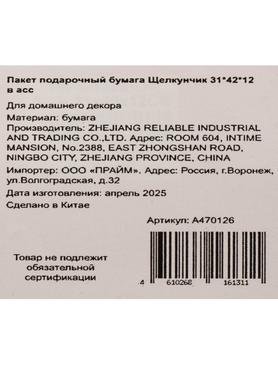 Вы можете приобрести «Пакет подарочный бумага, 31х12х42 см, в ассортименте, Щелкунчик, A470126» и другие товары в нашем интернет-магазине в Астрахани по низким ценам и с бесплатным самовывозом.