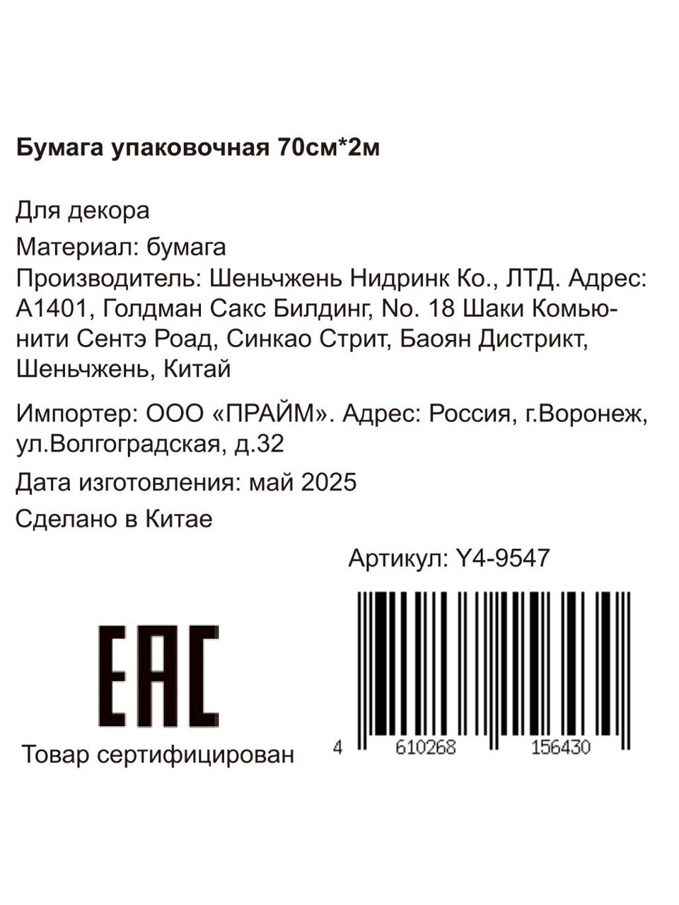 Вы можете приобрести «Бумага упаковочная 200х70 см, золото, Y4-9547» и другие товары в нашем интернет-магазине в Нижнем Новгороде по низким ценам и с бесплатным самовывозом.