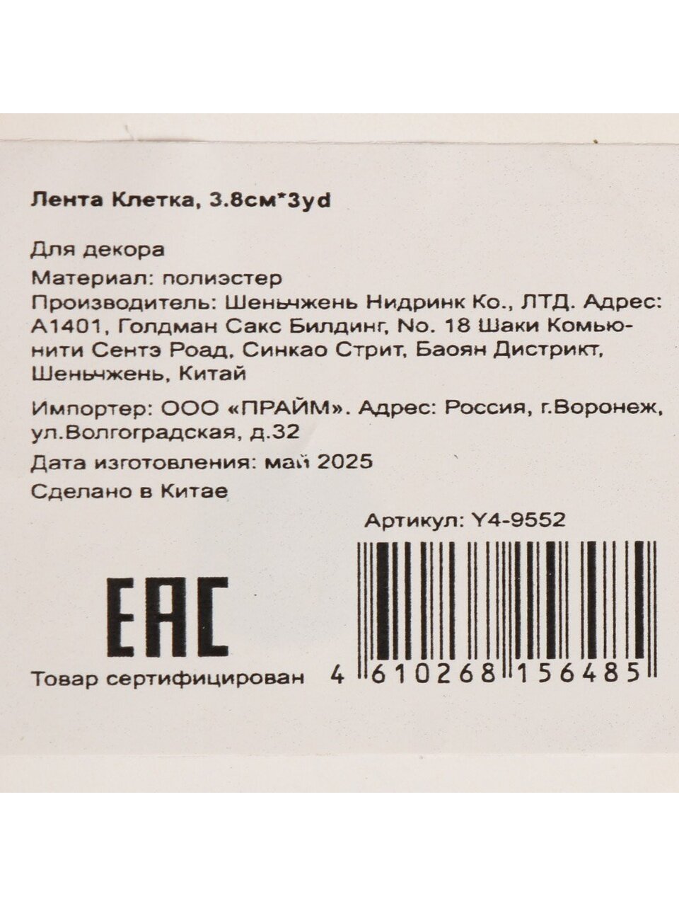 Лента Клетка 3,8 см × 3 м: стильная текстильная отделка для декора и подарков. Практично, ярко, выгодно — создайте уют в доме или на даче за 1 минуту!