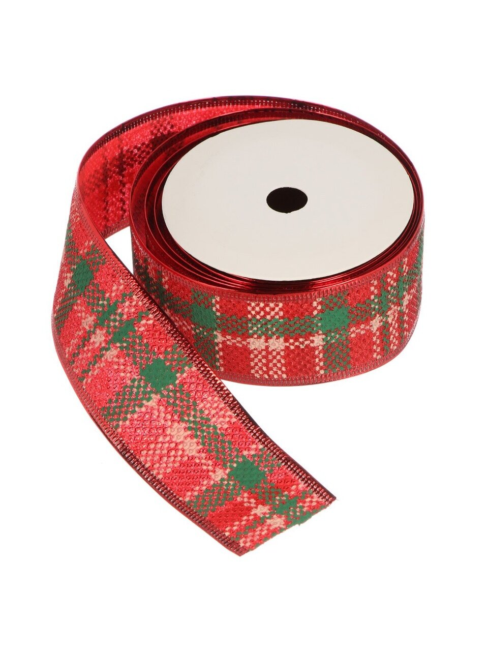 Лента выполнена из текстиля, ширина — 3,8 см, длина — 3 м, цвет — красный, модель — Клетка.
