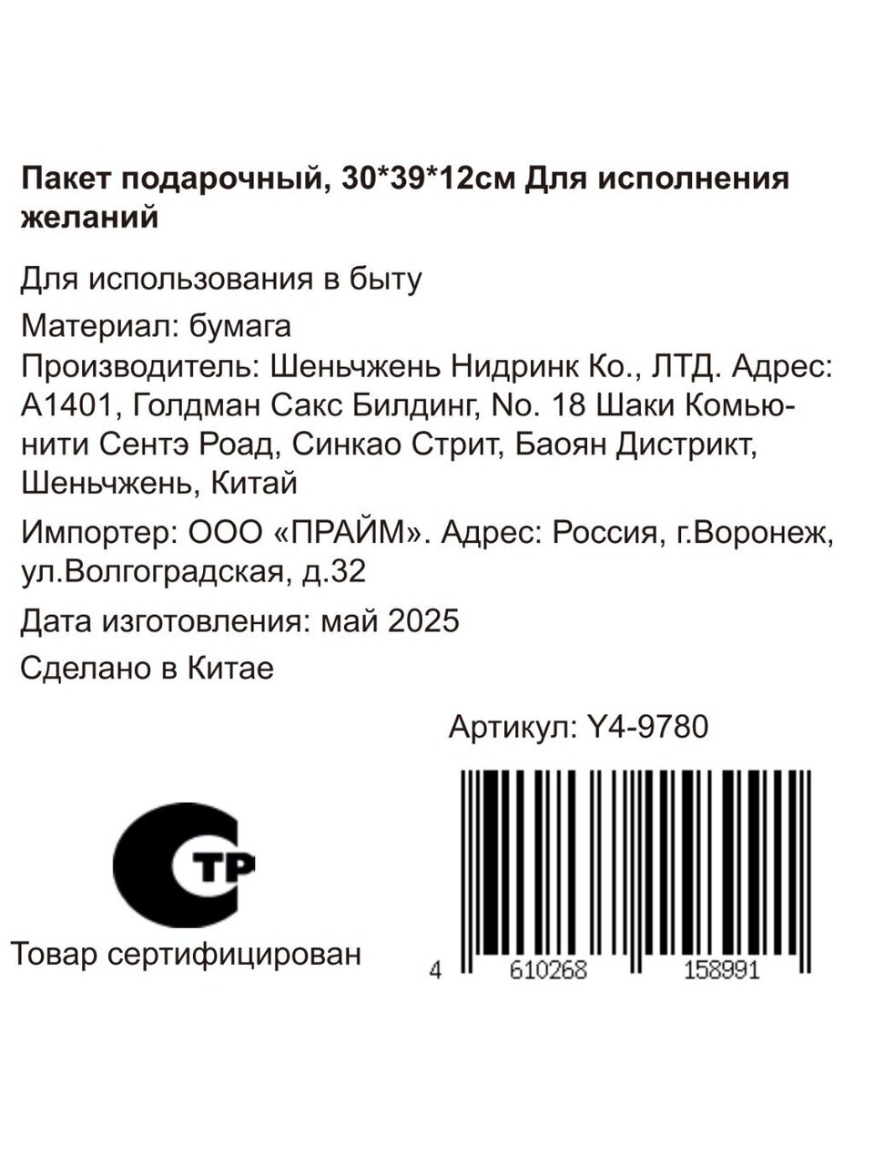 Вы можете приобрести «Пакет подарочный бумага, 39х12х30 см, Для исполнения желаний, Y4-9780» и другие товары в нашем интернет-магазине в Казани по низким ценам и с бесплатным самовывозом.