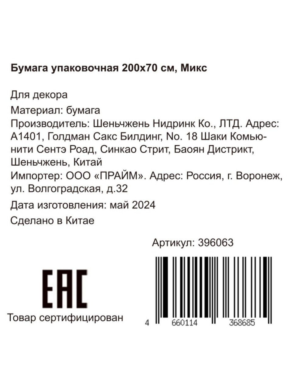 Вы можете приобрести «Бумага упаковочная 200х70 см, в ассортименте, с декоративным рисунком, Y4-4985» и другие товары в нашем интернет-магазине в Обнинске по низким ценам и с бесплатным самовывозом.