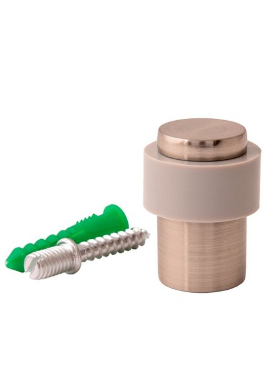 Упоры для крепления к полу внутри помещений применяются для ограничения угла открывания двери и защиты от повреждений стен и дверной фурнитуры. Защитный резиновый отбойник амортизирует дверь, смягчая удар и приглушая звук. Скрытые отверстия для крепления. Конструктив данной модели предполагает снятие верхней крышки упора, и установку самореза через корпус.