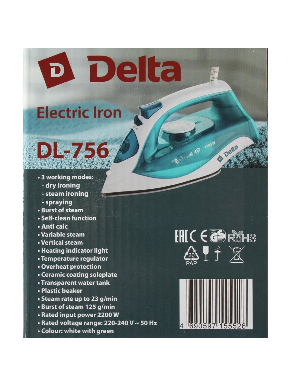 Вы можете приобрести «Утюг Delta, DL-756, 2200 Вт, керамика, антинакипь, 1.8 м, белый с зеленым» и другие товары в нашем интернет-магазине в Смоленске по низким ценам и с бесплатным самовывозом.