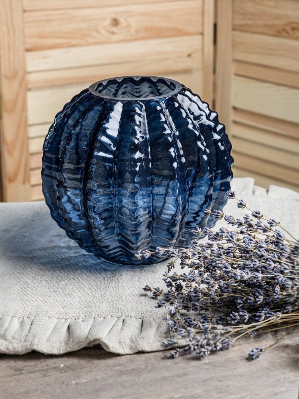 Ваза стекло настольная 17x16 см Декостек Плиссе Ночное небо 1901-Н5 — стильное решение для современного интерьера, которое гармонично впишется в гостиную, спальню или рабочий кабинет. Модель выполнена из высококачественного прозрачного стекла с насыщенным синим оттенком, что придаёт ей особую выразительность и элегантность. Круглая форма и узкое горло идеально подходят для живых цветов, подчеркивая красоту каждого букета и создавая атмосферу уюта и гармонии в доме. Такой аксессуар станет акцентом на столе, полке или каминной полке, добавляя интерьеру изысканности и современного шарма.