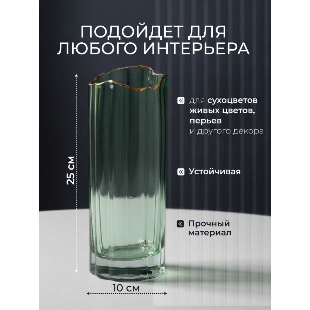 Вы можете приобрести «Ваза стекло, настольная, 25 см, Грани, Y6-6351, с золотой отводкой, зеленая» и другие товары в нашем интернет-магазине в Липецке по низким ценам и с бесплатным самовывозом.