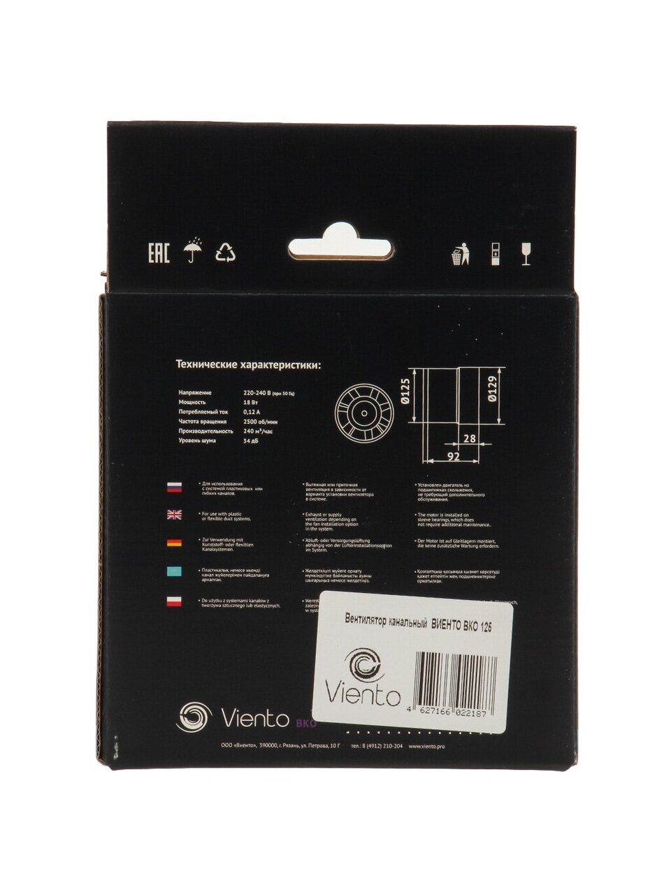 Вы можете приобрести «Вентилятор вытяжной канальный, Viento, установочный диаметр 125 мм, 18 Вт, 240 м³/ч, ВКО125» и другие товары в нашем интернет-магазине в Серпухове по низким ценам и с бесплатным самовывозом.