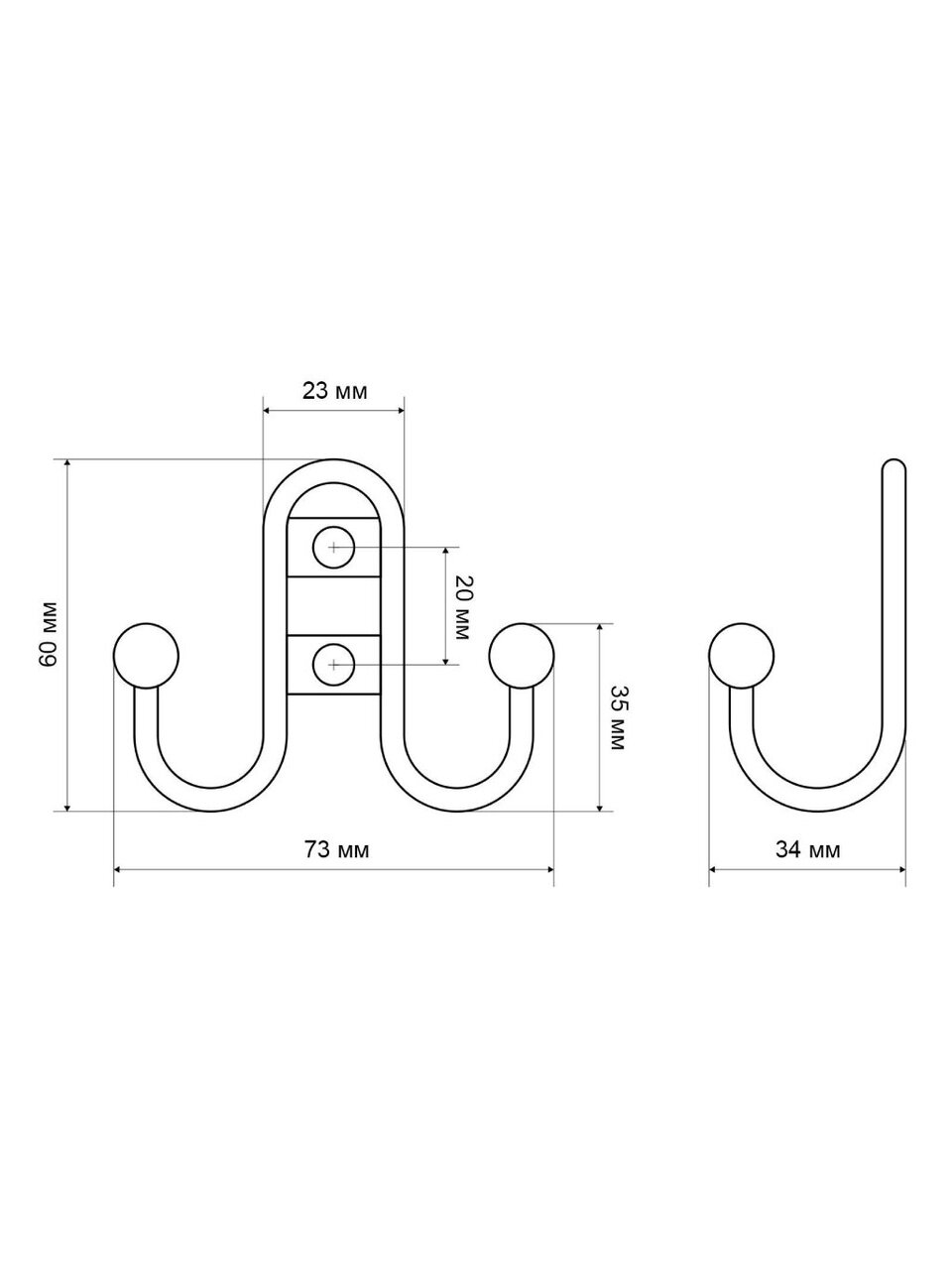 Металлический крючок с двумя рожками может быть использован в качестве вешалки для дома, дачи или хозяйственных помещений.