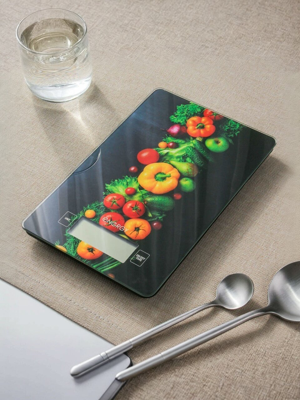 Весы кухонные электронные, стекло, Energy, EN-423 Овощи, платформа, точность 1 г, до 5 кг, LCD-дисплей, 101230