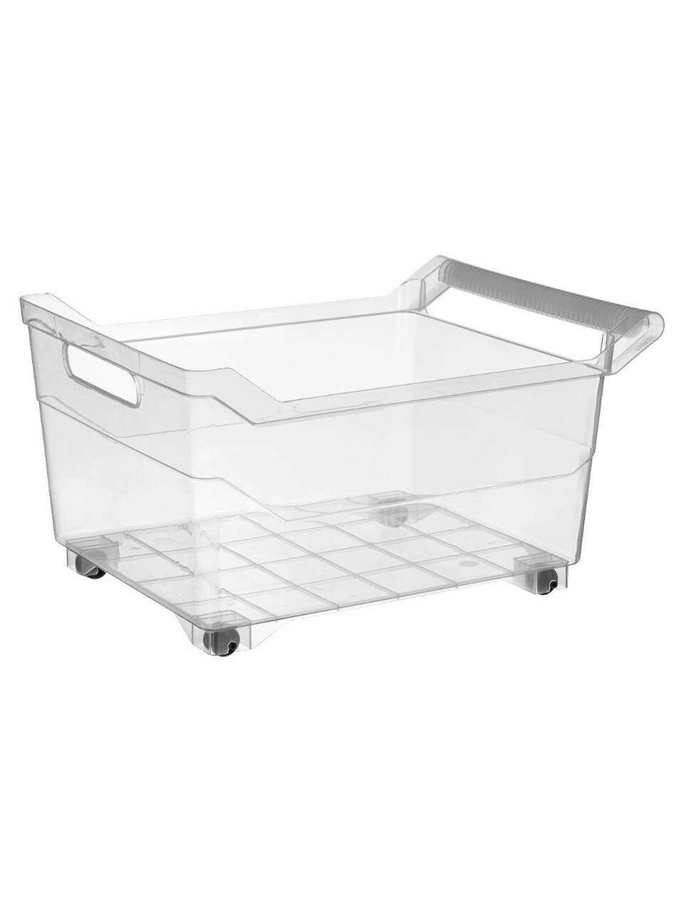 - Размер 40х30х22 см — универсальный формат для хранения одежды, игрушек, инструментов; бесцветный пластик облегчает поиск нужных вещей.