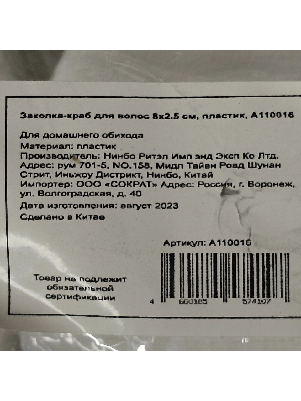 Вы можете приобрести «Заколка-краб для волос 8х2.5 см, пластик, A110016» и другие товары в нашем интернет-магазине в Железногорске по низким ценам и с бесплатным самовывозом.