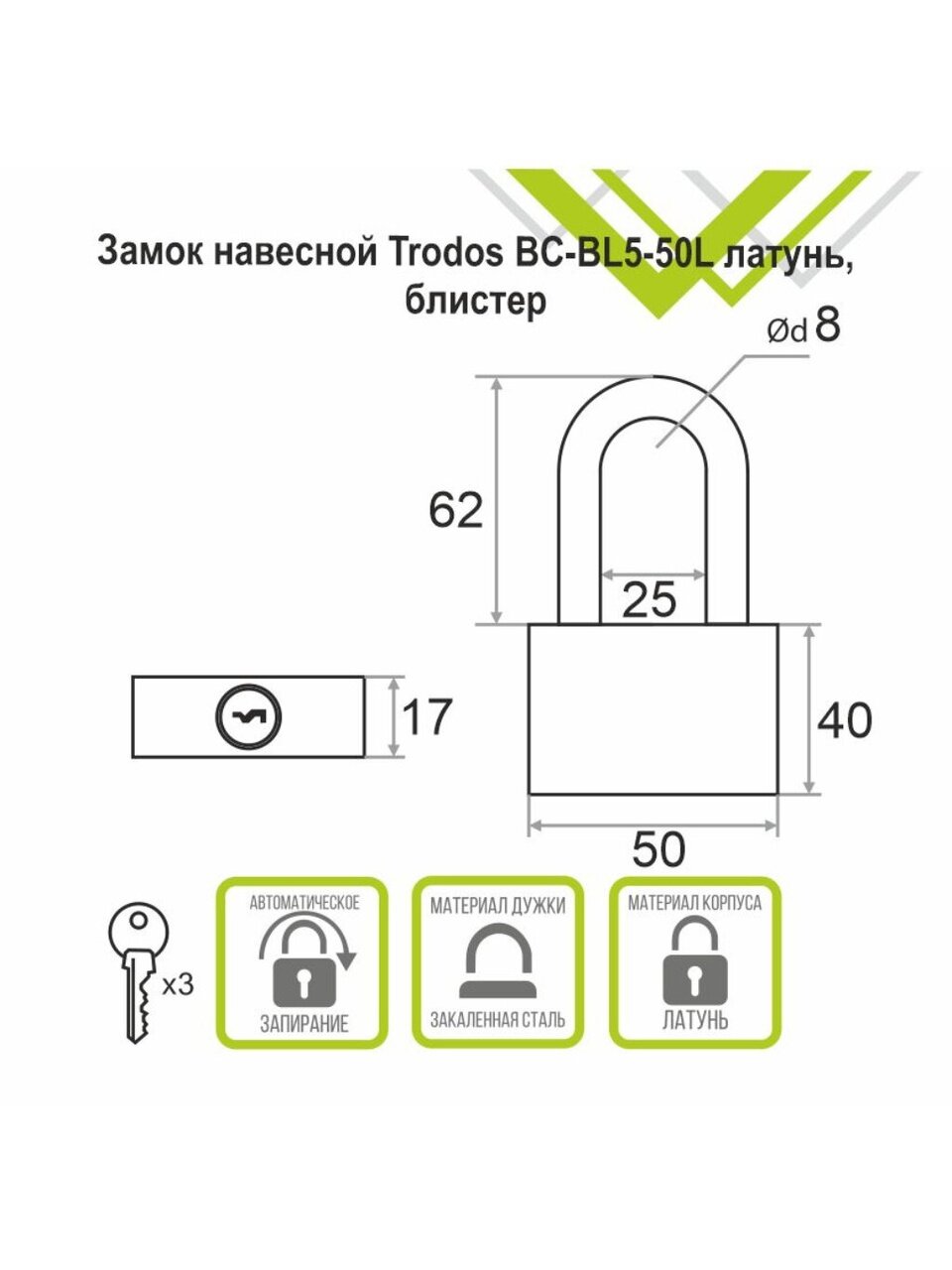 Вы можете приобрести «Замок навесной Trodos, BC-BL5-50L, 210 230, блистер, цилиндровый, 3 ключа» и другие товары в нашем интернет-магазине в Старом Осколе по низким ценам и с бесплатным самовывозом.