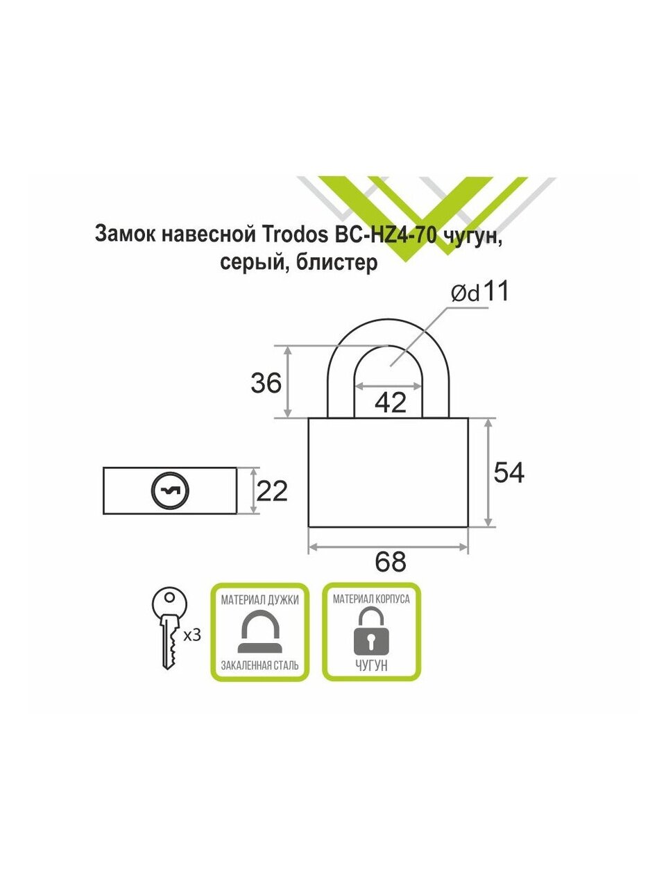 Вы можете приобрести «Замок навесной Trodos, BC-HZ4-70, 210 056, блистер, цилиндровый, серый, 3 ключа» и другие товары в нашем интернет-магазине в Серпухове по низким ценам и с бесплатным самовывозом.
