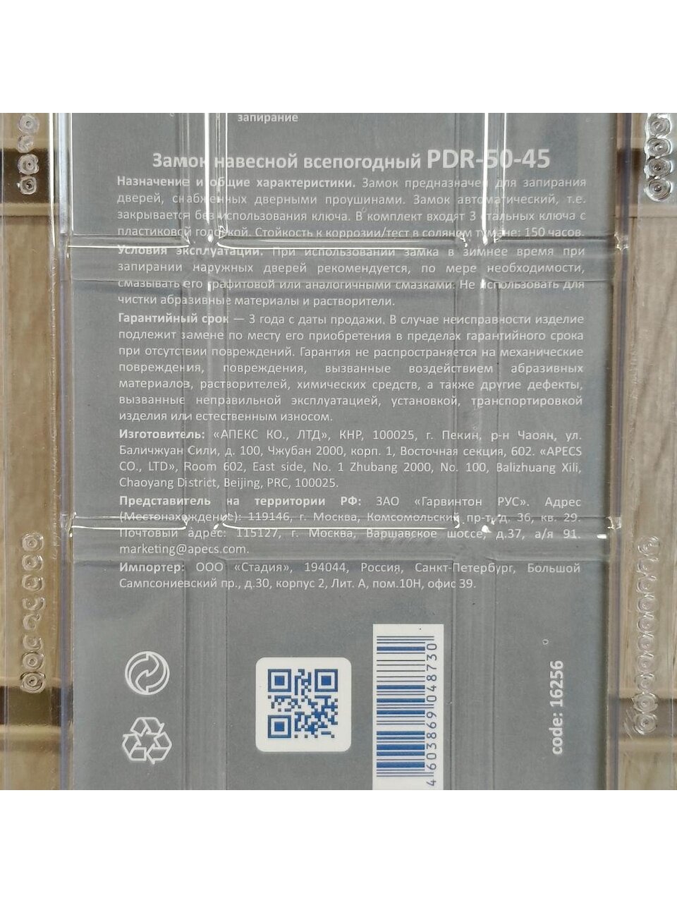 Вы можете приобрести «Замок навесной Apecs, PDR-50-45, блистер, цилиндровый, 3 ключа» и другие товары в нашем интернет-магазине в Серпухове по низким ценам и с бесплатным самовывозом.