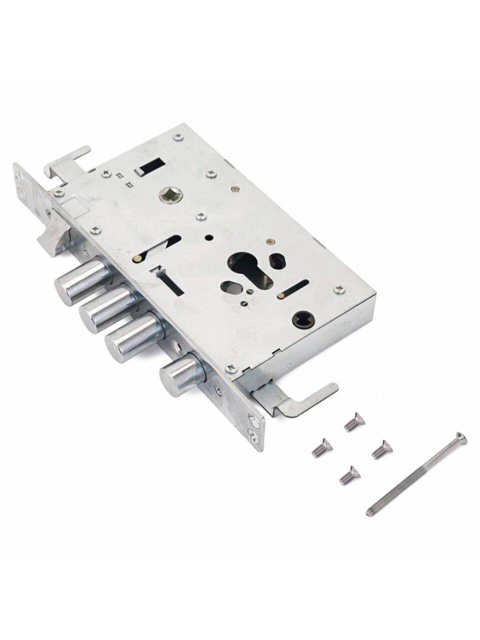 Аллюр ЗВ1-08А-C AТМ-L - врезной цилиндровый замок с защелкой и задвижкой без механизма секрета. Предназначен для установки в левые китайские металлические двери в качестве основного замка. Замок закрывается снаружи автоматически поднятием ручки вверх.