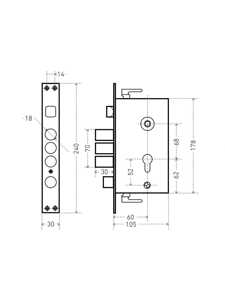 - Расстояние от центра механизма секрета до задвижки: 52 мм;