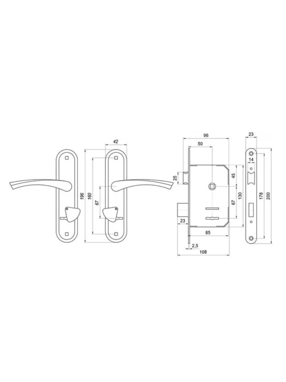 - Материалы: корпус - сталь, засов и защелка - сталь, ручки - сплав алюминиевый, накладки - сталь.