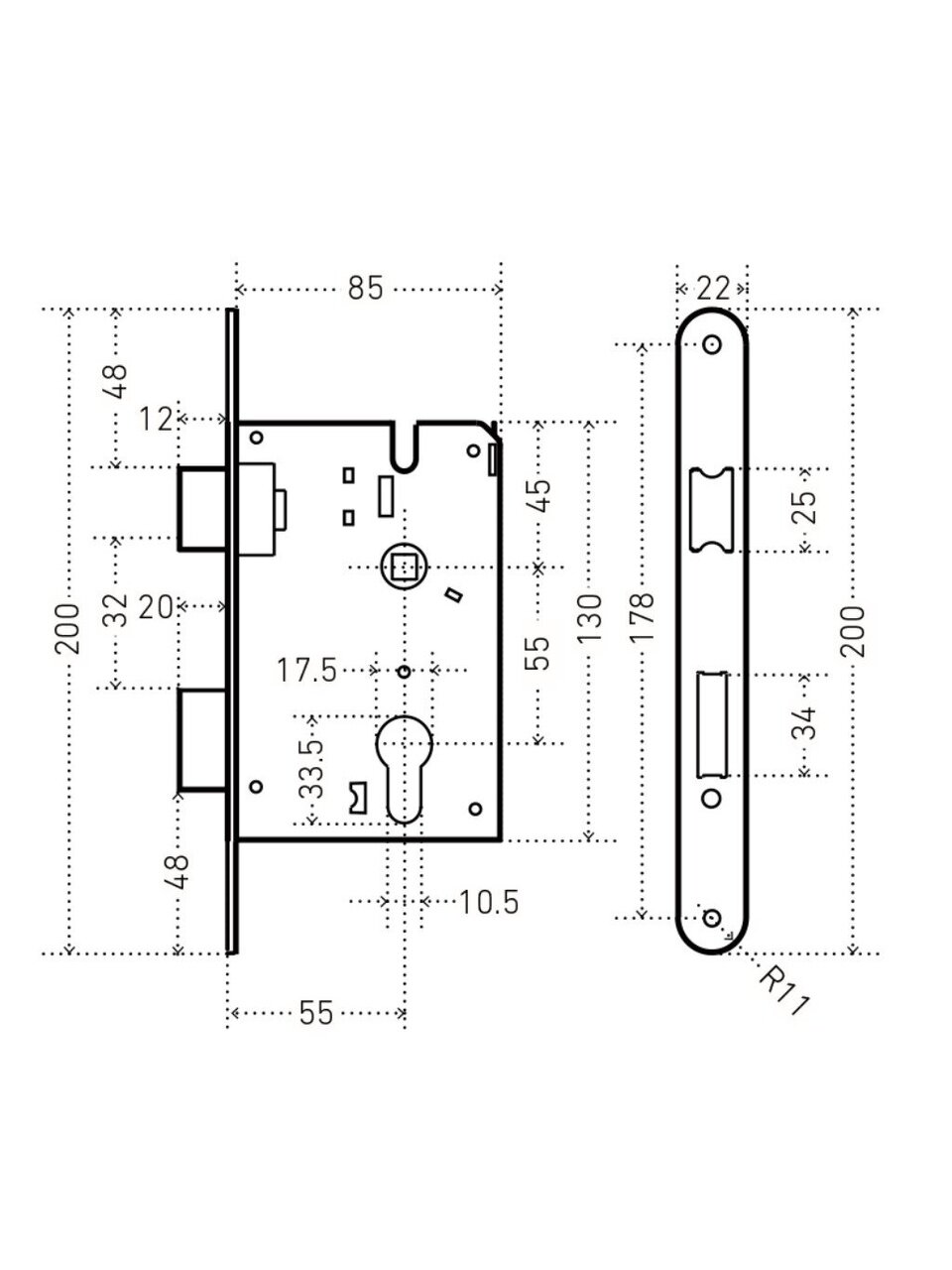 - Межосевое расстояние замка является стандартным для большинства дверей, что делает этот замок универсальным и подходящим для широкого спектра дверей.