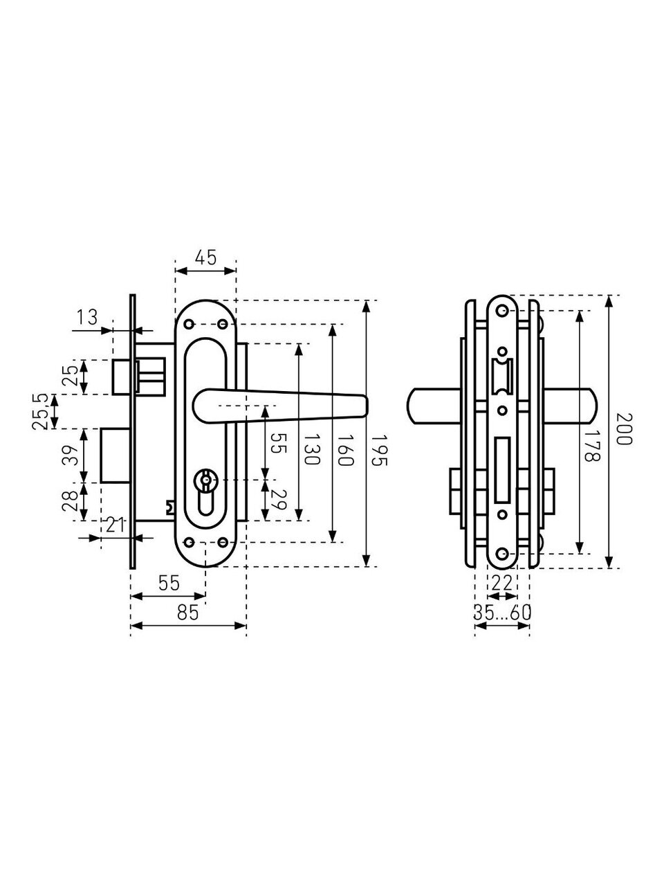 - Межосевое расстояние замка является стандартным для большинства дверей, что делает этот замок универсальным и подходящим для широкого спектра дверей.