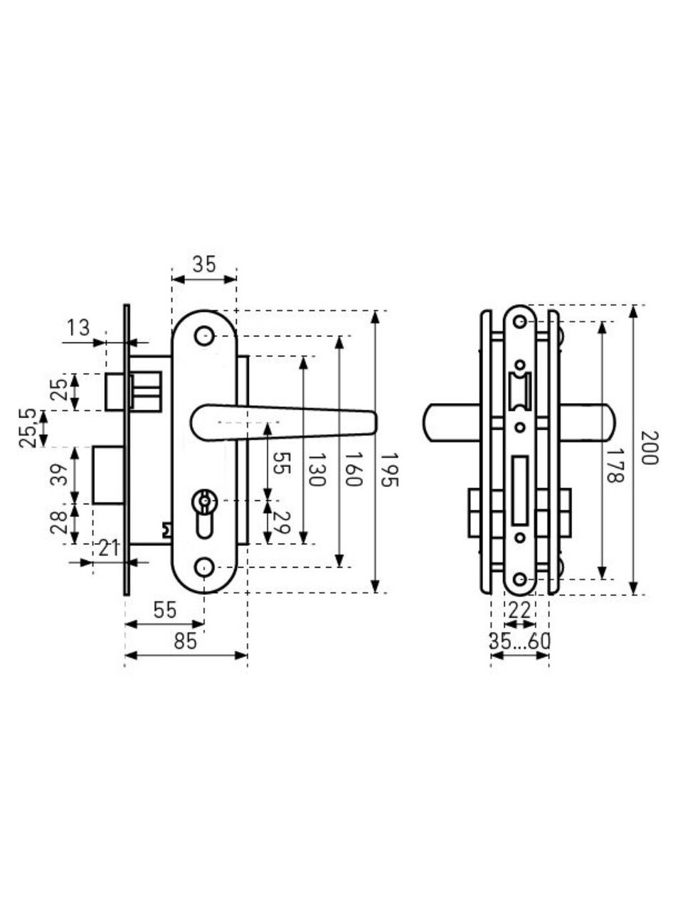 - Межосевое расстояние замка является стандартным для большинства дверей, что делает этот замок универсальным и подходящим для широкого спектра дверей.
